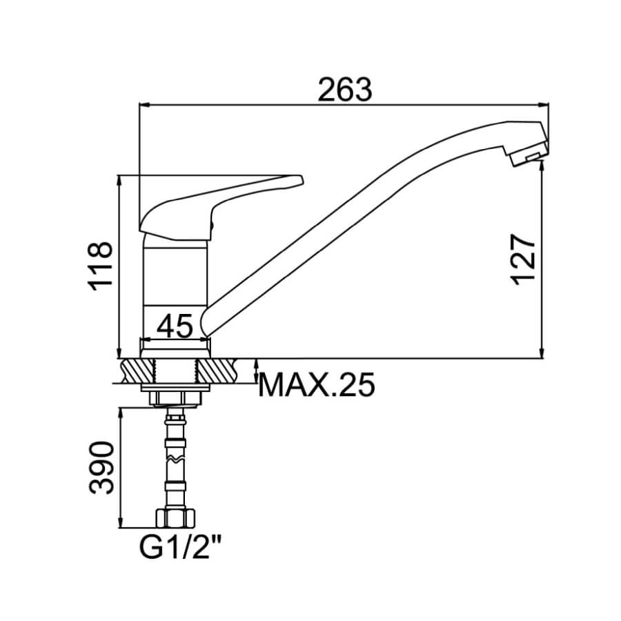 Смеситель для кухни,однорычажный, хром. Керамический картридж d35. (Комлектуется подводкой для воды)(упакованы по 2 штуки в коробке)