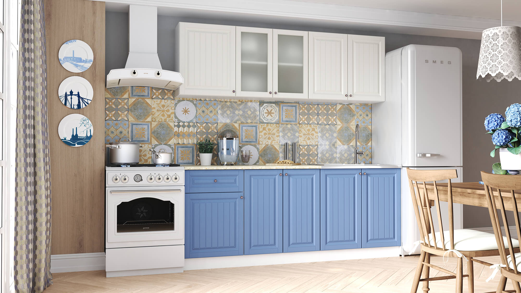 Кухня Хозяюшка 2,0 Акация Белая-Деним доступна к заказу в различных цветовых исполнениях, подходящих к любому интерьеру обеденной зоны.