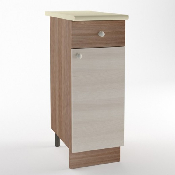 Особенностью стола является наличие ящика, что позволяет удобно хранить кухонные принадлежности и аксессуары.