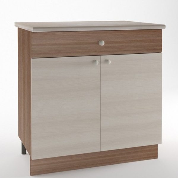 Особенностью стола является наличие ящика, что позволяет удобно хранить кухонные принадлежности и аксессуары.