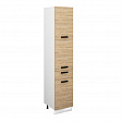 Пенал выполнен в современном стиле модерн, что позволяет ему гармонично вписаться в любой интерьер. Цвет пенала - белый гладкий/дуб вотан, что делает его визуально легким и воздушным.