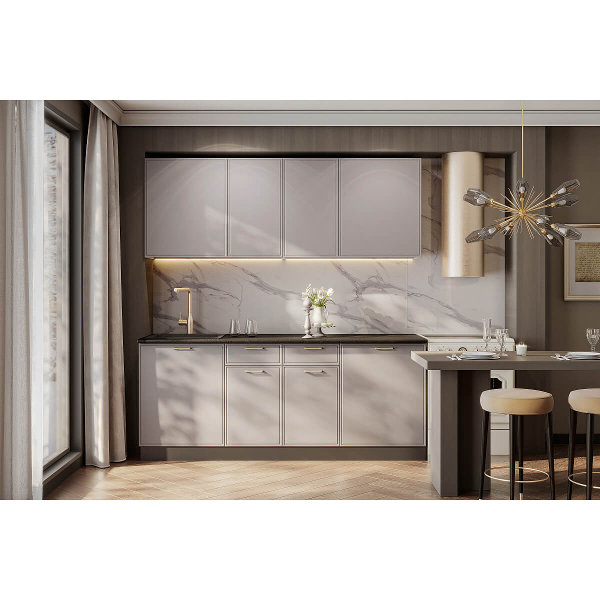 Кухня Адель 2,0 Белый/Нео/Черный доступна к заказу в различных цветовых исполнениях, подходящих к любому интерьеру обеденной зоны.