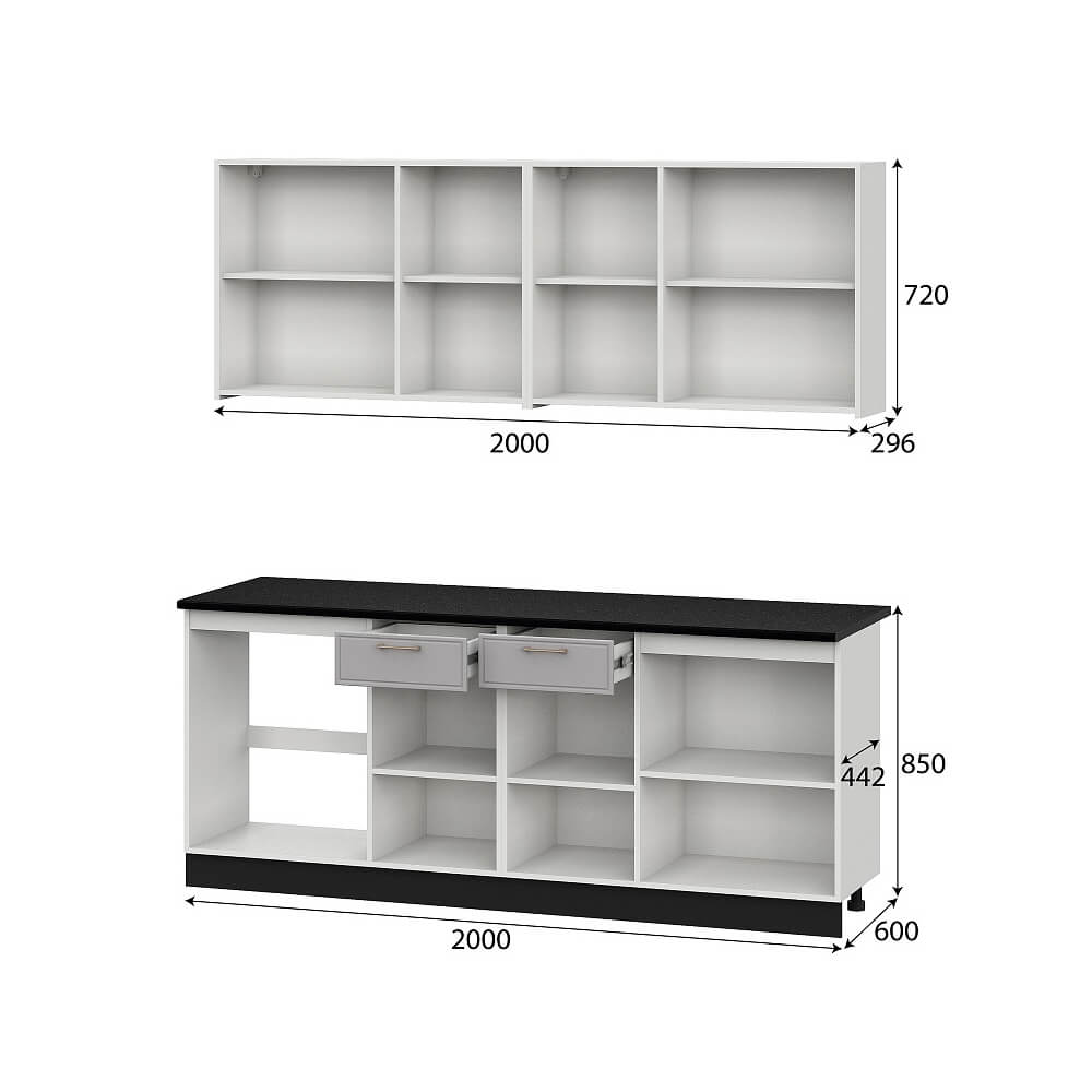Кухня Адель 2,0 Белый/Нео/Черный, материал корпуса - ЛДСП, габариты 2000x600x2170 мм.