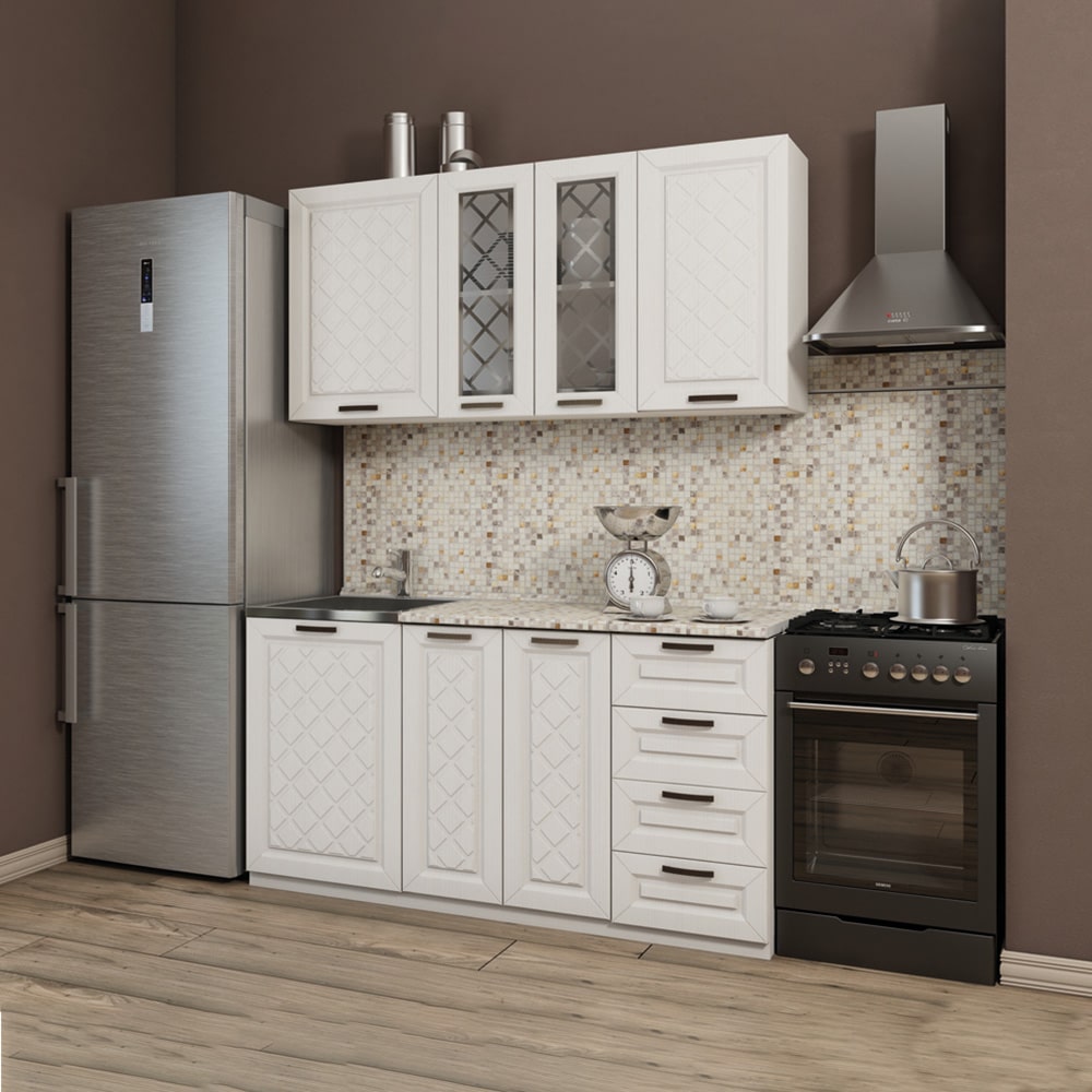 Кухня АГАВА светлая 1500, материал корпуса - ЛДСП, габариты 1500x600x2100 мм.