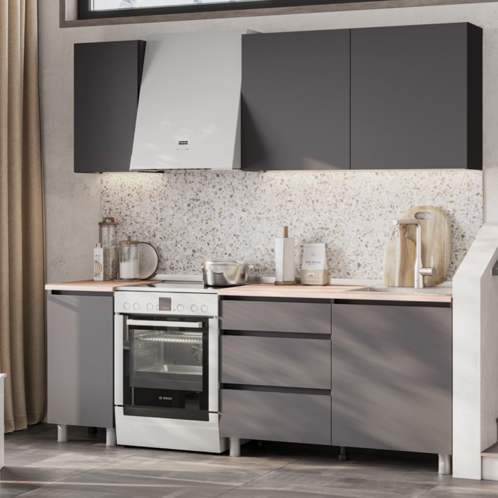 Кухня Денвер 1600 Графит серый, материал корпуса - ЛДСП, габариты 1600x600x2200 мм. Графит — это глубокий и насыщенный цвет, самостоятелный, идеально смотрится в монохромном исполнении. Отлично впишется в любые стили интерьера: «Минимализм», «Современный» и всем полюбившийся «Лофт».