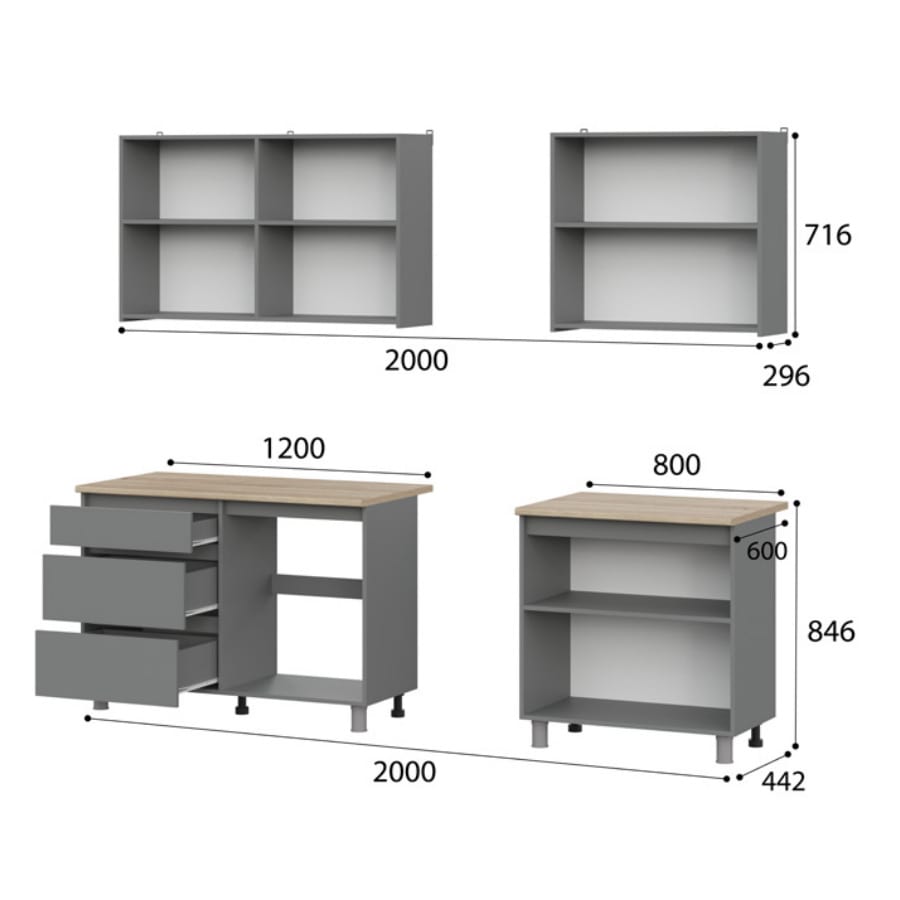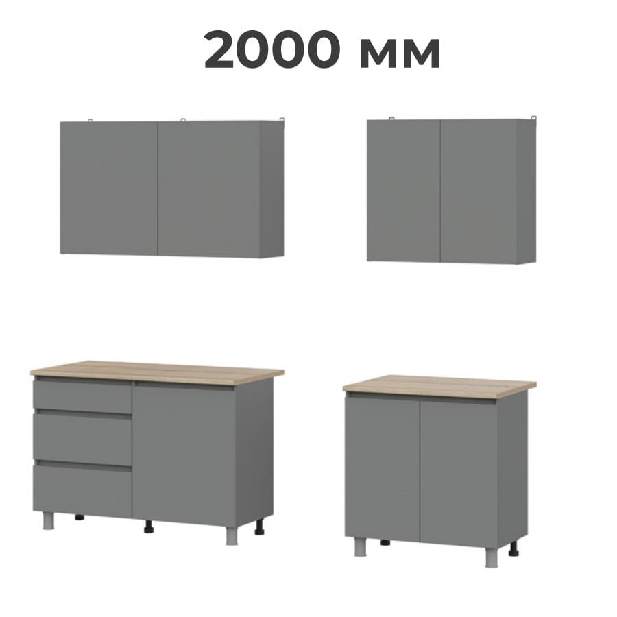 Кухня Денвер 2000 Графит серый, материал корпуса - ЛДСП, габариты 2000x600x2200 мм.