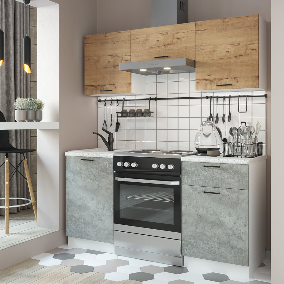 Кухня Дуся 1,6 Дуб бунратти/Цемент, материал корпуса - ЛДСП, габариты 1600x600x1970 мм.