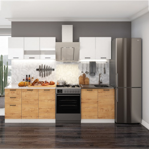 В комплект вхожит: кухонные модули, столешница, цоколь, фурнитура.