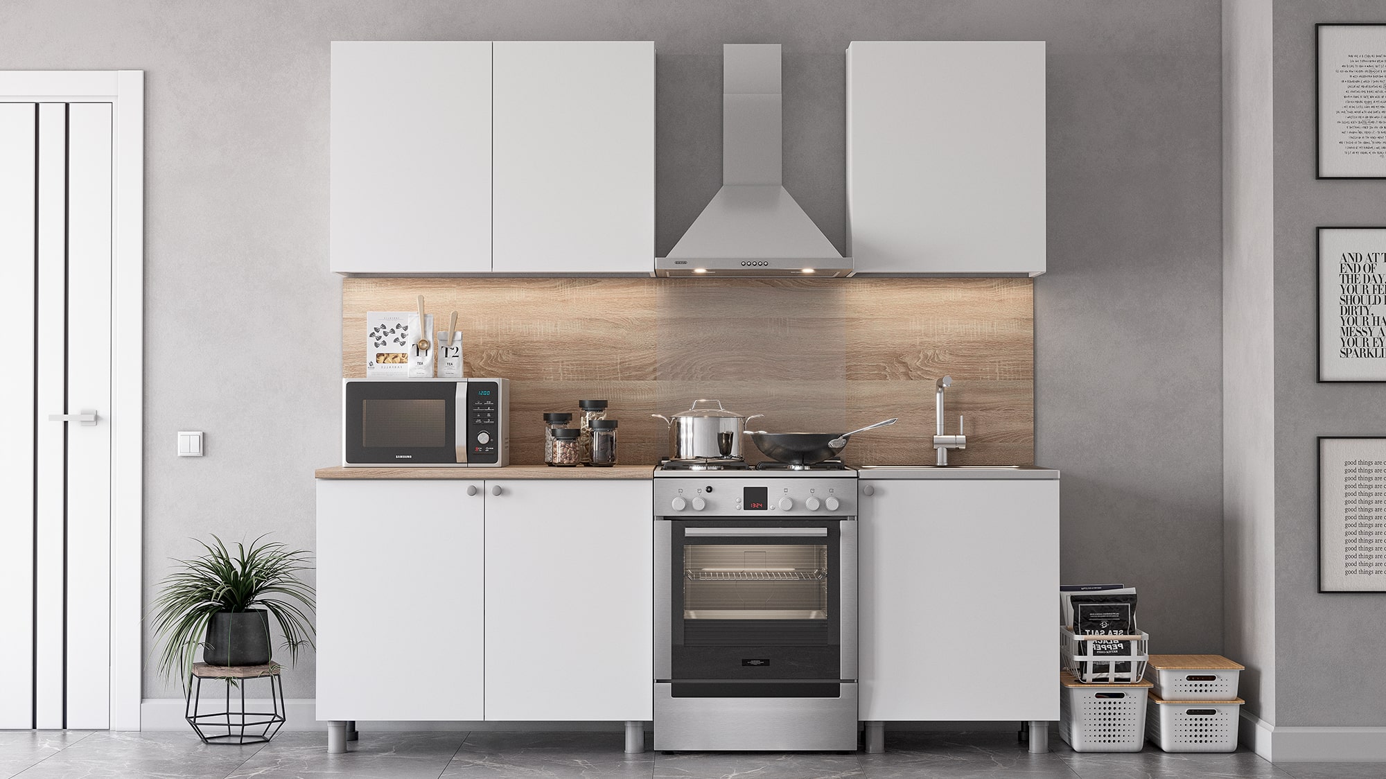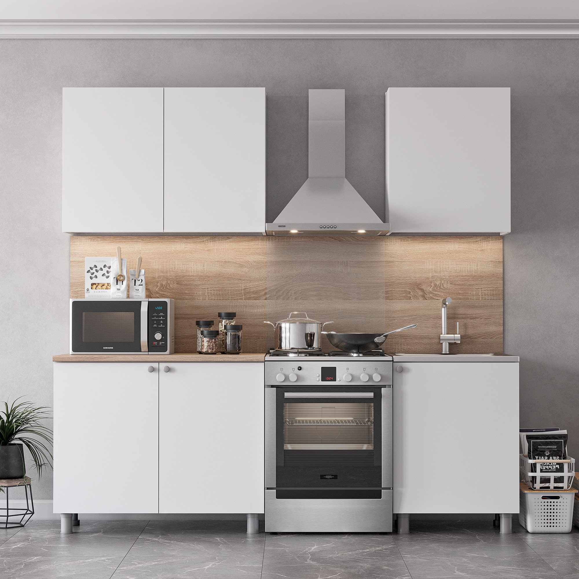 Кухня КГ- 6 1600 Белый, материал корпуса - ЛДСП, габариты 1600x600x2160 мм. Кухня КГ-6 экологична, долговечна и безопасна, а дизайн и функционал нисколько не уступает более дорогим моделям.