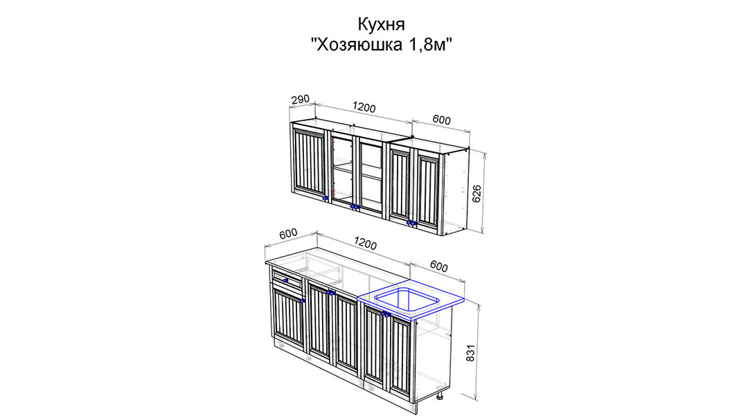 Общая длина кухни 1800 мм