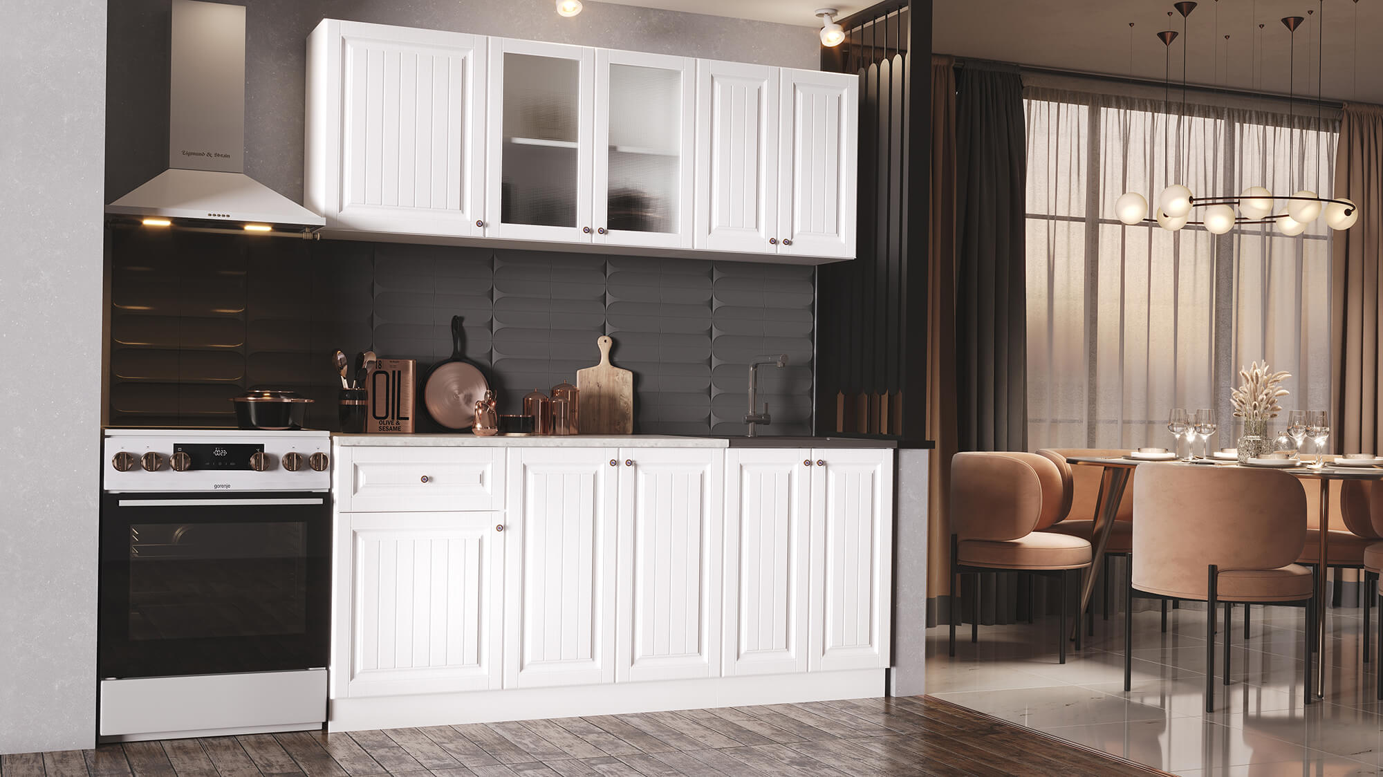 Кухня Хозяюшка 1,8 Акация белая доступна к заказу в различных цветовых исполнениях, подходящих к любому интерьеру обеденной зоны.