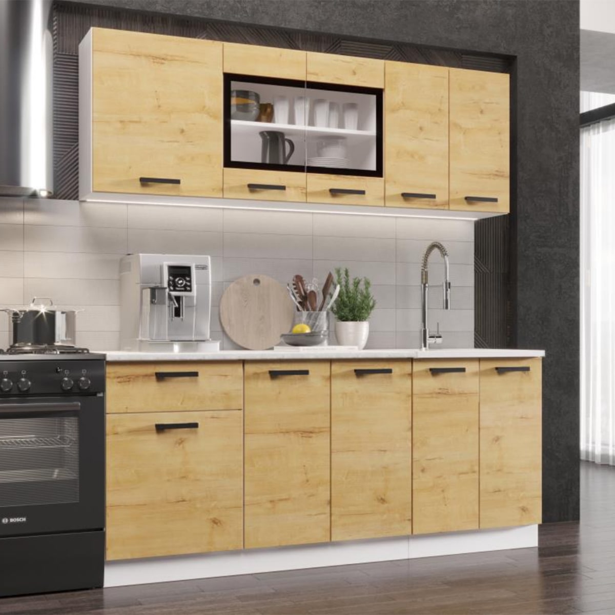 Кухня Хозяюшка 1,8 ЛДСП Дуб Вотан, материал корпуса - ЛДСП, габариты 1800x600x2100 мм.