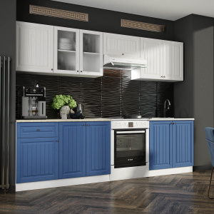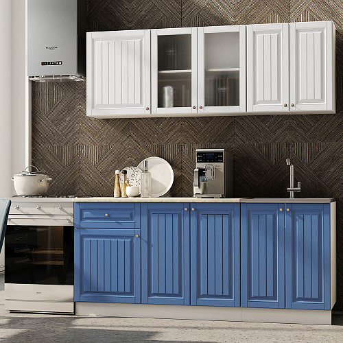 Кухня Хозяюшка 1,8 Акация Белая-Деним, материал корпуса - ЛДСП, габариты 1800x600x2100 мм.