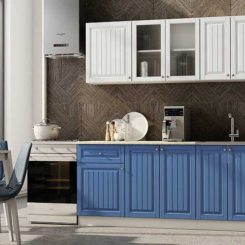 Кухня Хозяюшка 1,8 Акация Белая-Деним доступна к заказу в различных цветовых исполнениях, подходящих к любому интерьеру обеденной зоны.