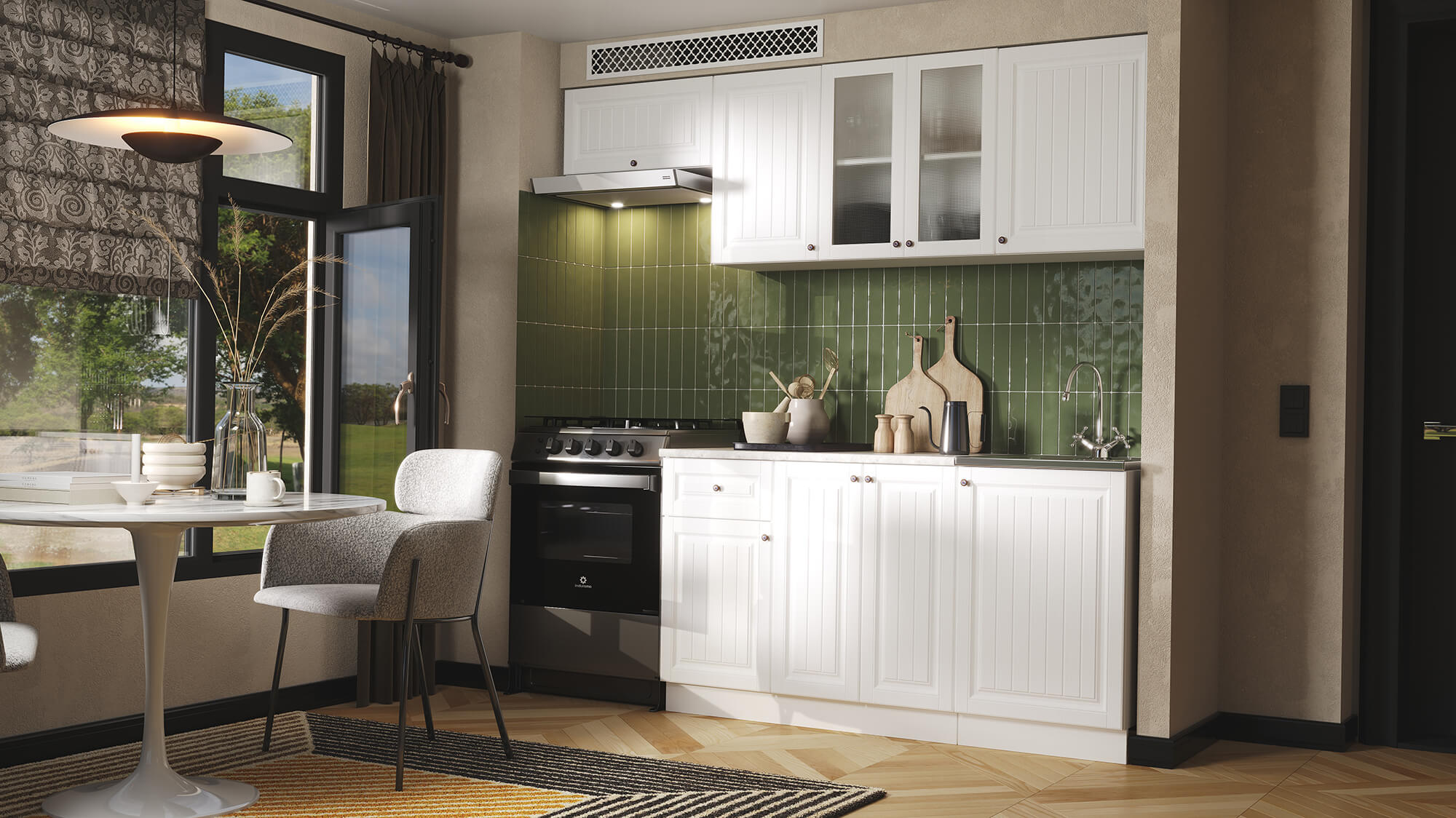 Кухня Хозяюшка 2,1 Акация Белая доступна к заказу в различных цветовых исполнениях, подходящих к любому интерьеру обеденной зоны.