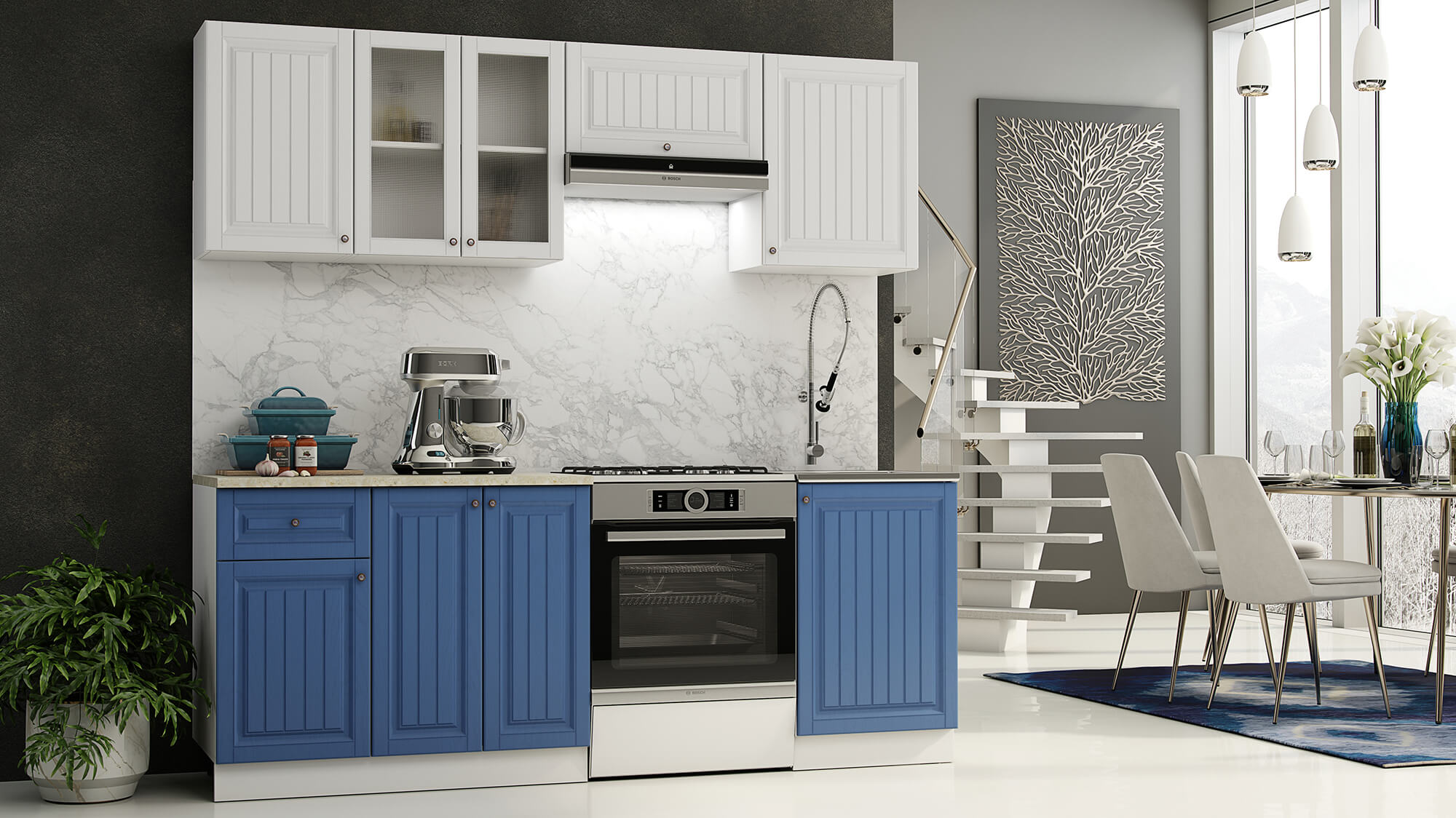 Кухня Хозяюшка 2,1 Акация Белая-Деним доступна к заказу в различных цветовых исполнениях, подходящих к любому интерьеру обеденной зоны.