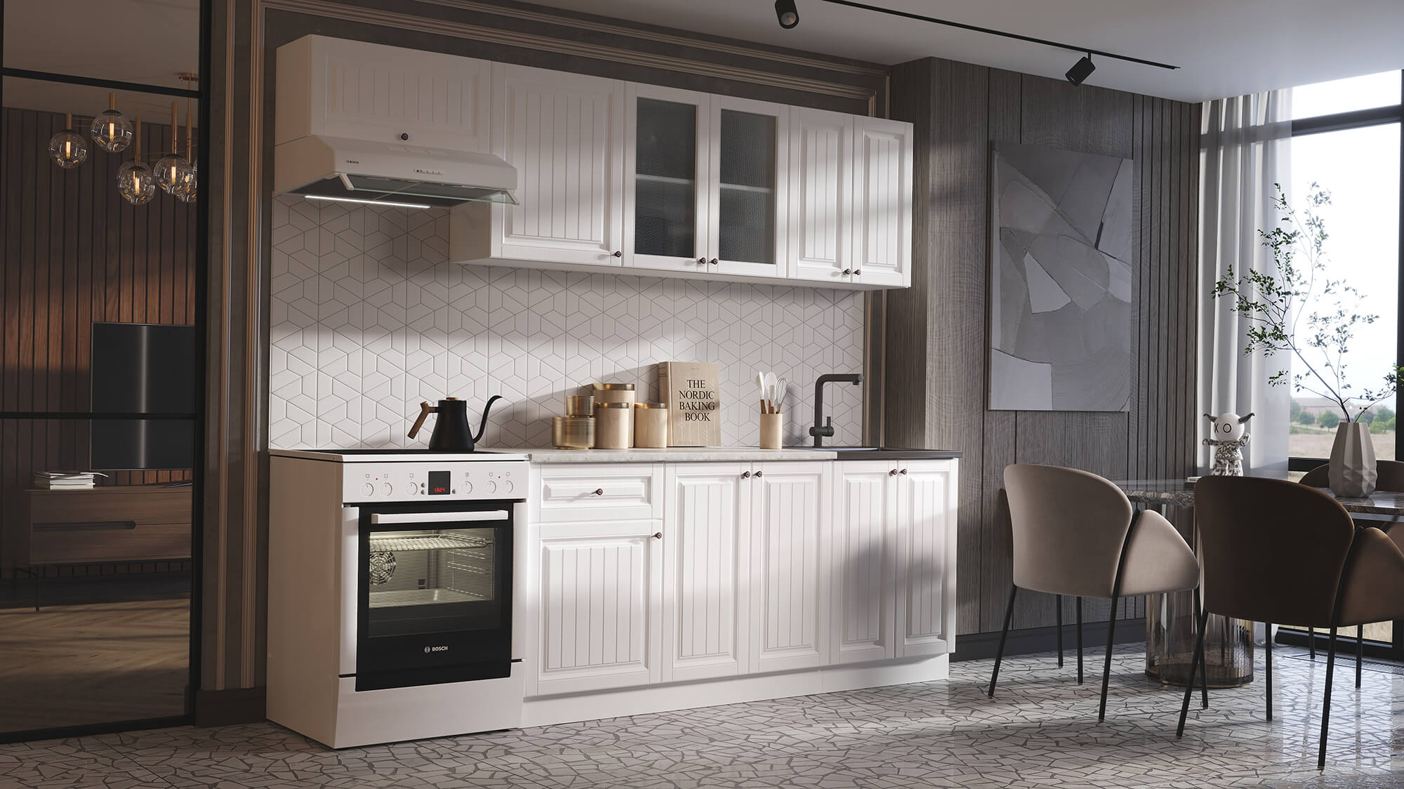 Кухня Хозяюшка 2,4 Акация Белая доступна к заказу в различных цветовых исполнениях, подходящих к любому интерьеру обеденной зоны.