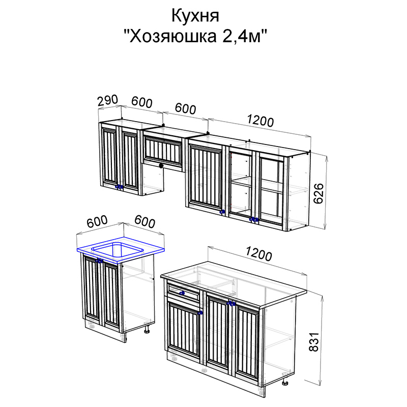 Кухня Хозяюшка 2,4 Трюфель, материал корпуса - ЛДСП, габариты 2400x600x2100 мм.