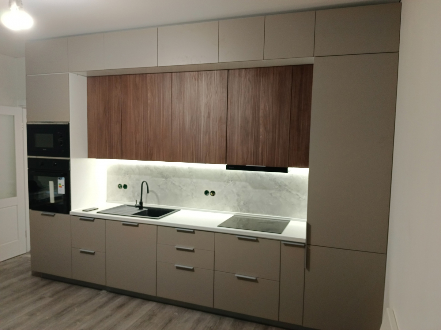 Купил кухню линейки Классика. Понравился выбор фасадов, есть варианты выбора ручек. Проект разрабатывали в салоне на Просвещения. И под разработанный проект вызвали замерщика, который уже на адресе дал пару рекомендаций, что поменять и добавить. Он же приехал потом ее собирать.