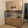 У нас не так много вариантов по проекту кухни, так как студия очень маленькая. Взяли стандартный вариант в белом цвете.