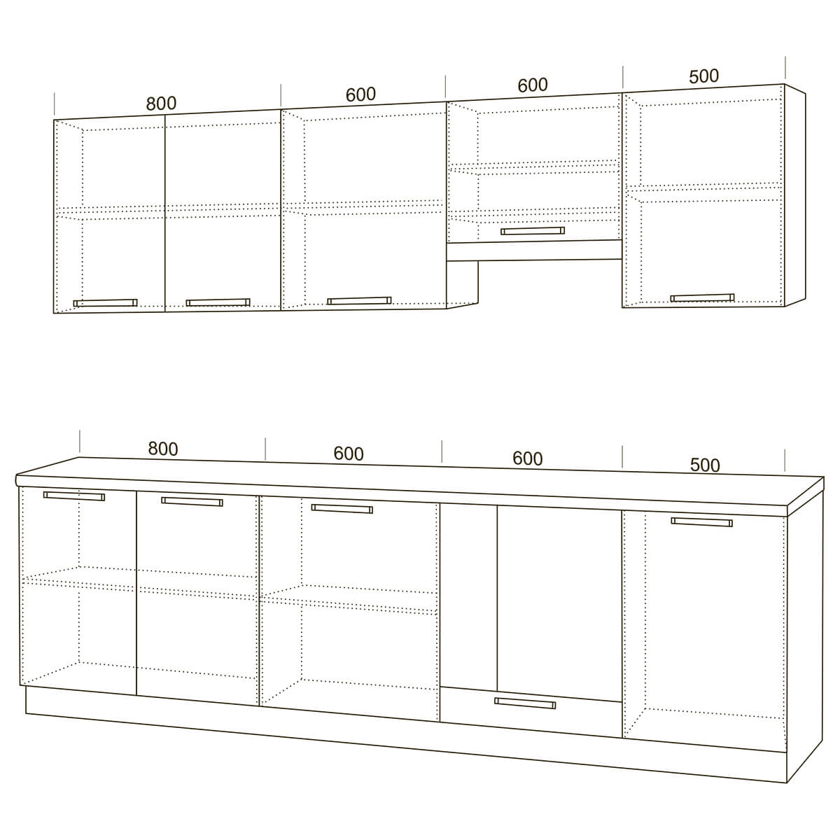 Кухня Классика 2500, материал корпуса - ЛДСП, габариты 2500x600x2100 мм.