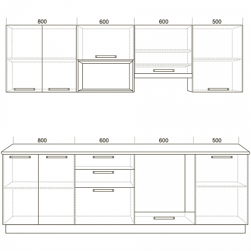 Кухня Классика 2500 вариант 2, материал корпуса - ЛДСП, габариты 2500x600x2100 мм.
