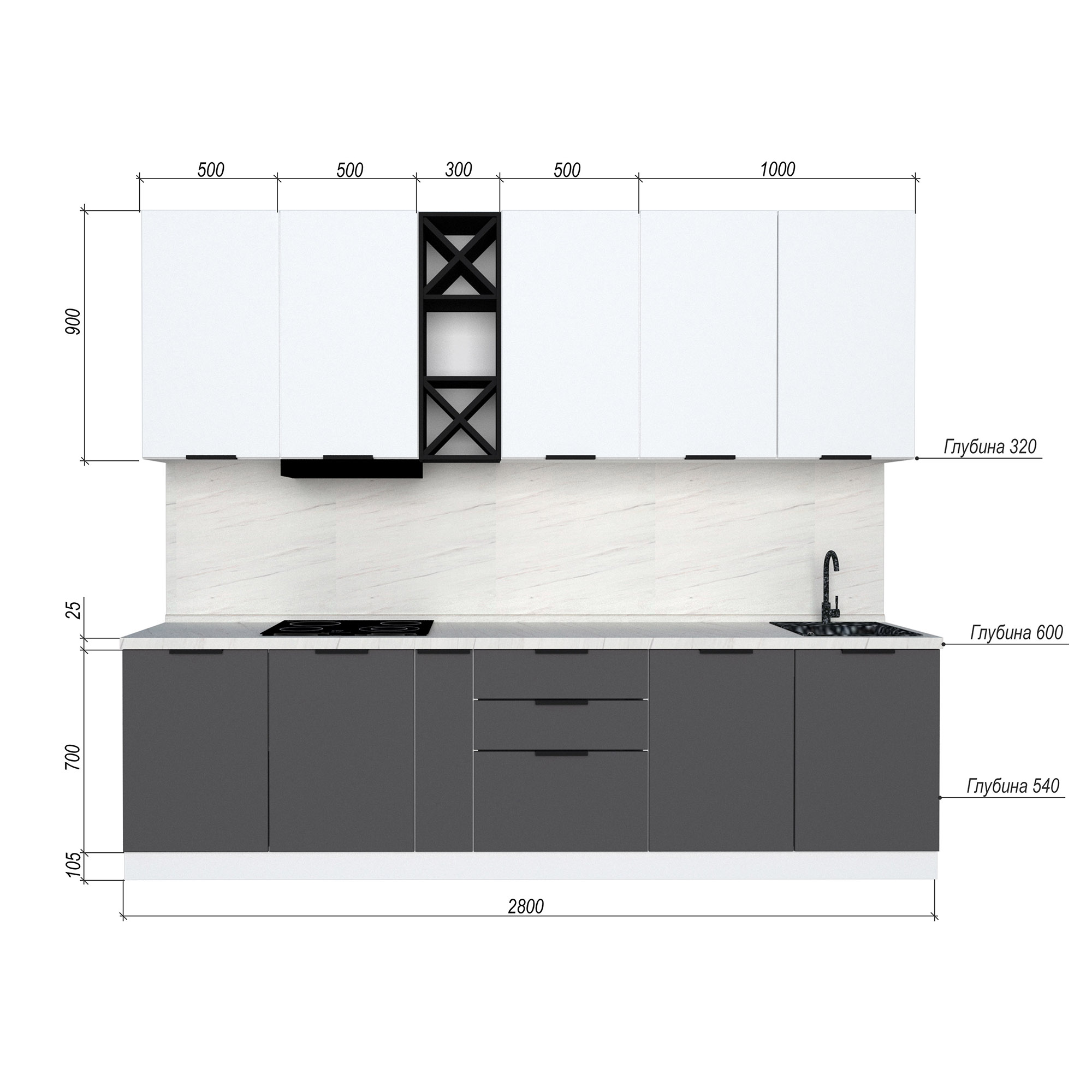 Кухня Классика 2800, материал корпуса - ЛДСП, габариты 2800x600x2300 мм.