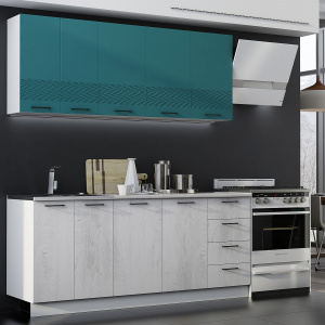 Кухня Лагуна 2900 Морская волна/Дуб седой, материал корпуса - ЛДСП, габариты 2900x600x2140 мм.