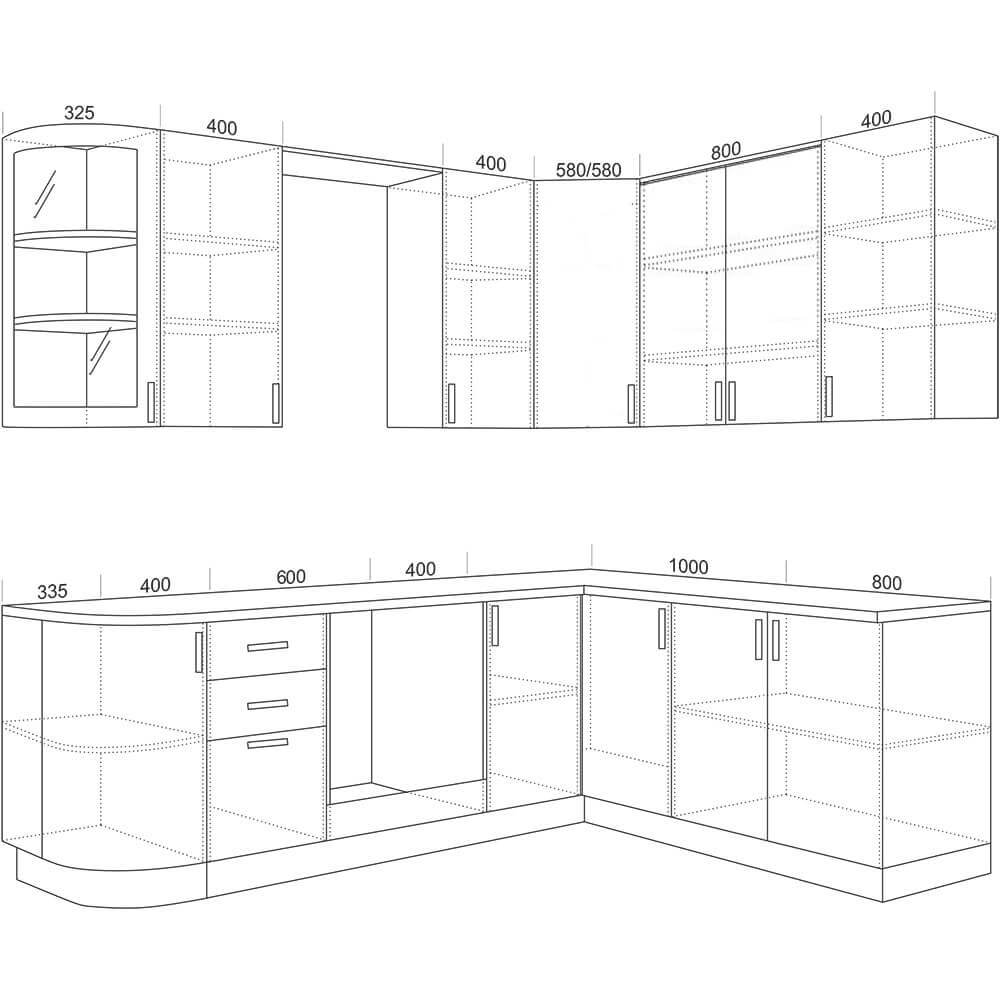 Кухня Массив угловая 1800х1735 мм витраж левая, материал корпуса - ЛДСП, габариты 1800x1735x2300 мм.
