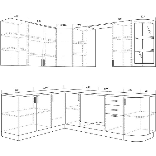верх - МВ35, МВ7,МВ8, МВ35, МВ35,МВ29В (высота верхних модулей 900 мм)