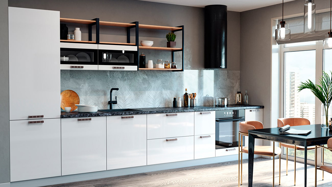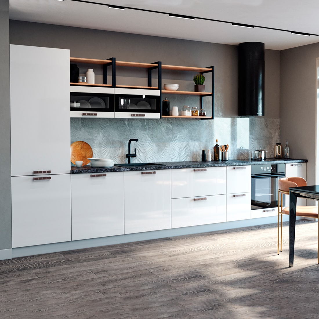 Кухонный гарнитур Олива 4000 Снег доступна к заказу в различных цветовых исполнениях, подходящих к любому интерьеру обеденной зоны.