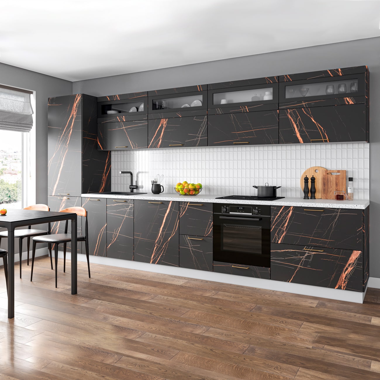 Кухонный гарнитур Ройс 3800 Кварц черный