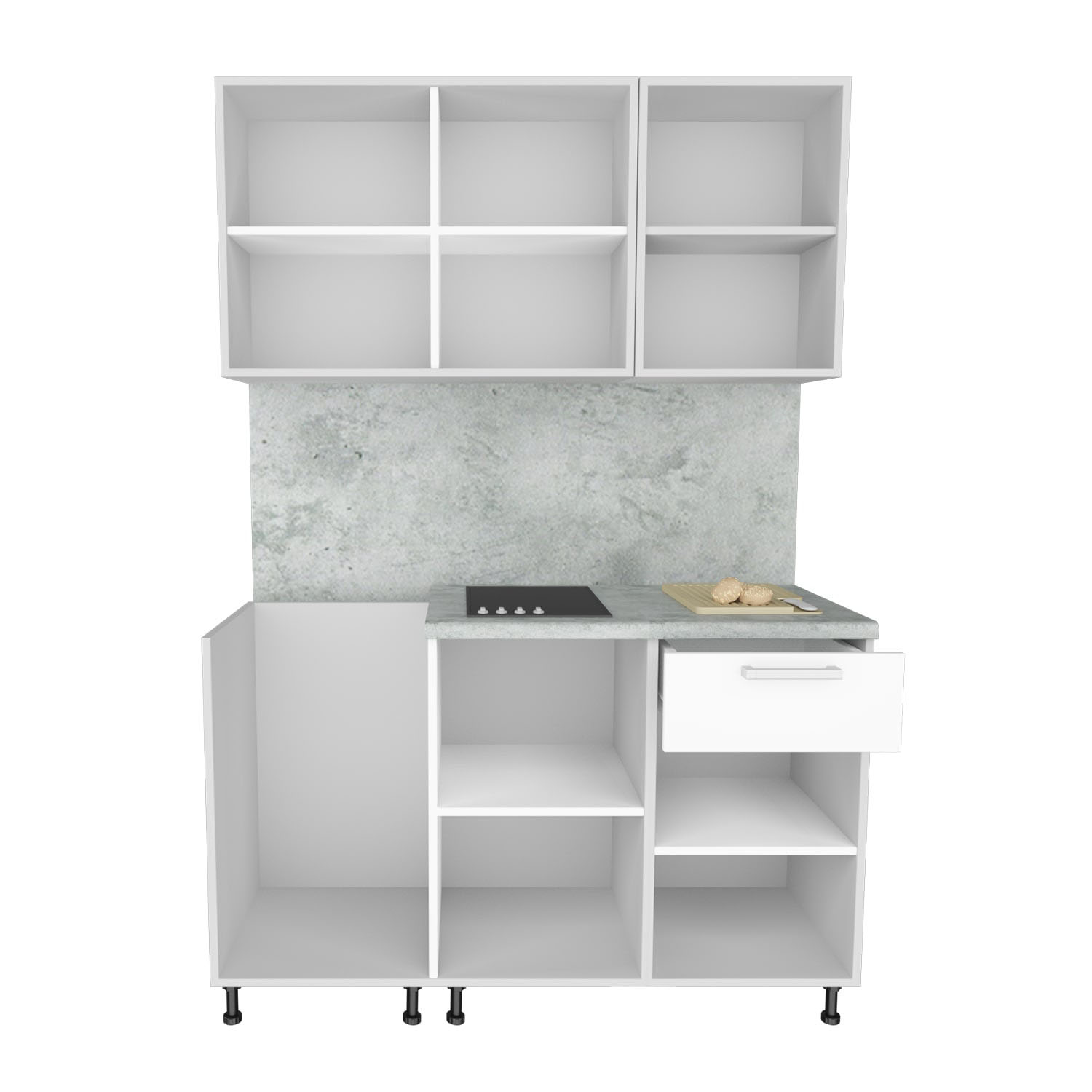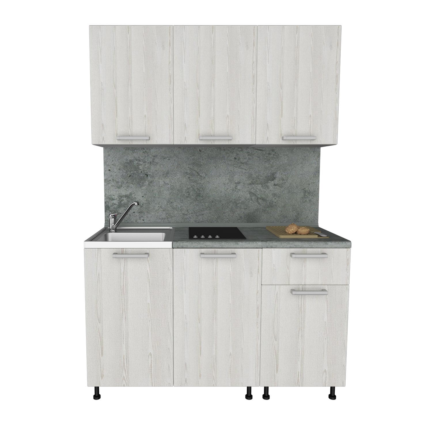 Здравствуйте! Хочу поделиться впечатлениями по использованию данной кухни. У нас она установлена уже около года. И в целом со своей задачей справляется. Жаль, что когда мы покупали не было дверей в голубых тонах. В итоге мы взяли бетон вниз и белый наверх. Белый очень маркий оказался, постоянно приходится его намывать. Этот цвет подойдет, только если на кухне не готовить!
