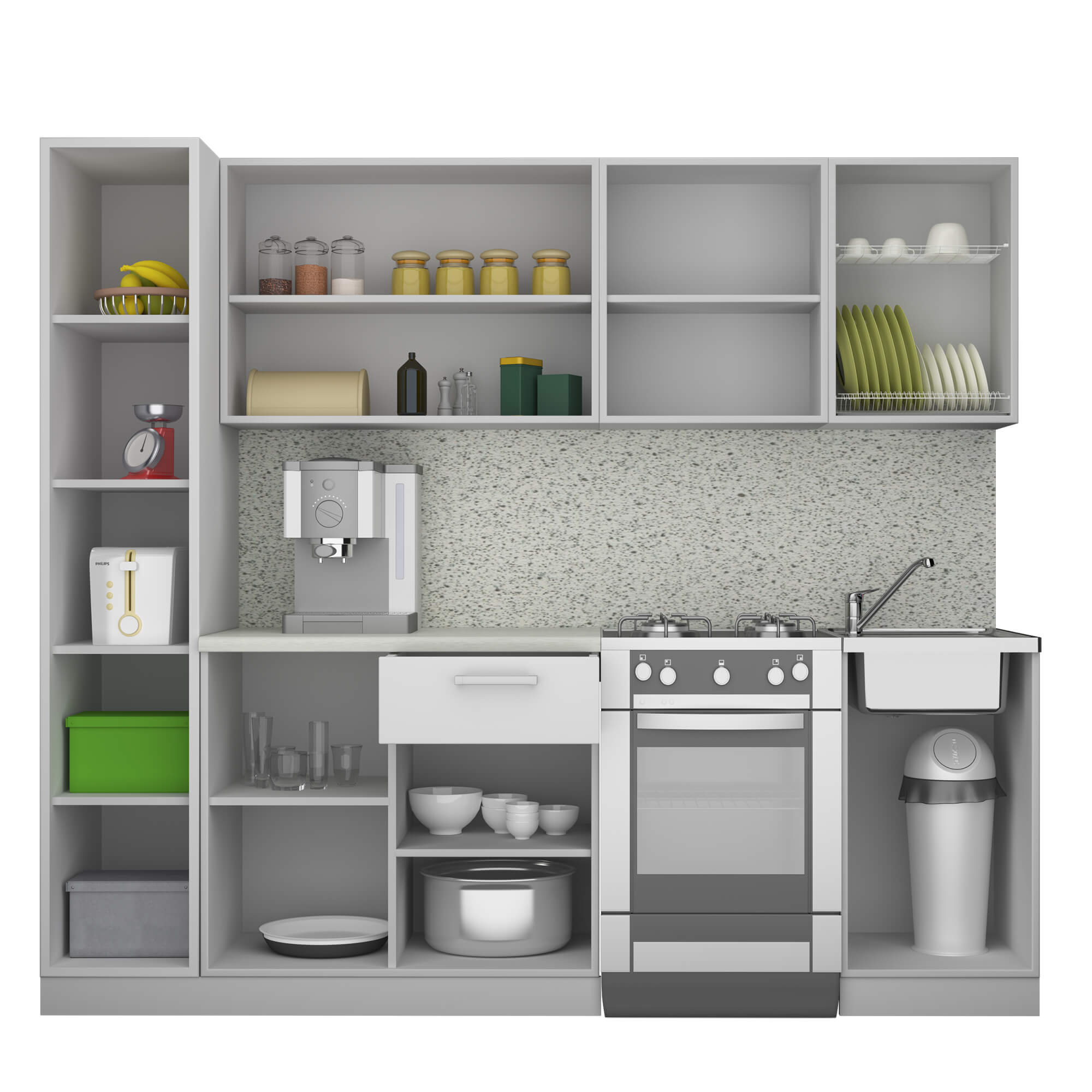 Сама кухня пришла в разобранном виде, все шкафы в коробках с фурнитурой и инструкцией. Петли все вместе в одном пакете с планками, заглушками и прочим. Сушилку привезли просто упакованную в полиэтилен. Но, все доехало в полном комплекте.