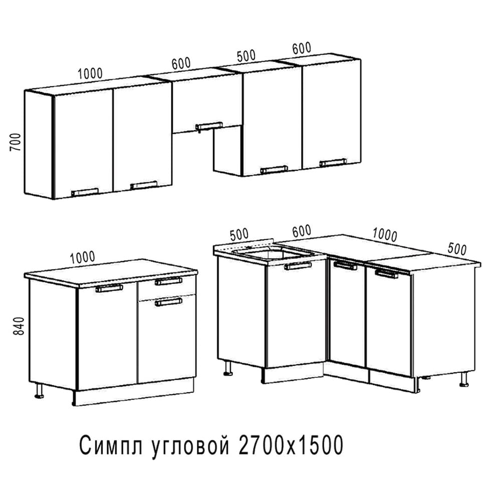 Кухня Симпл угловая 2700x1500