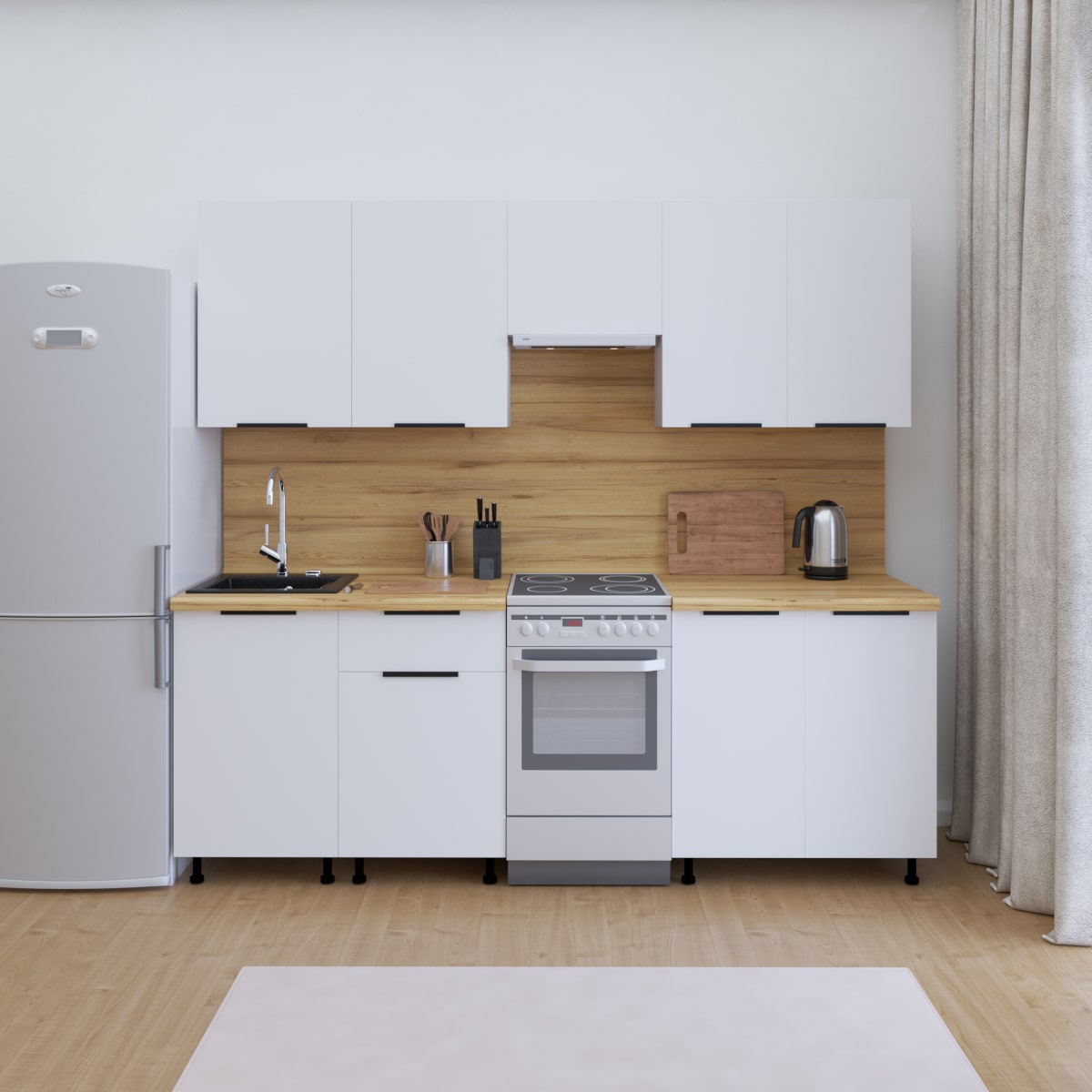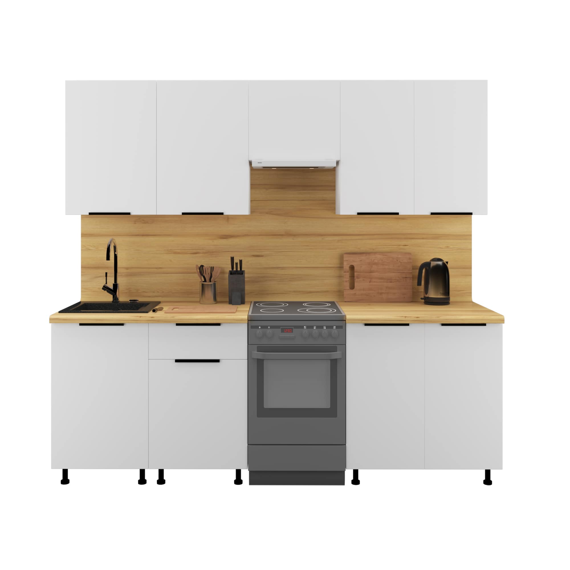 Кухня Сити 2300 Белый матовый, материал корпуса - ЛДСП, габариты 2300x600x2100 мм.
