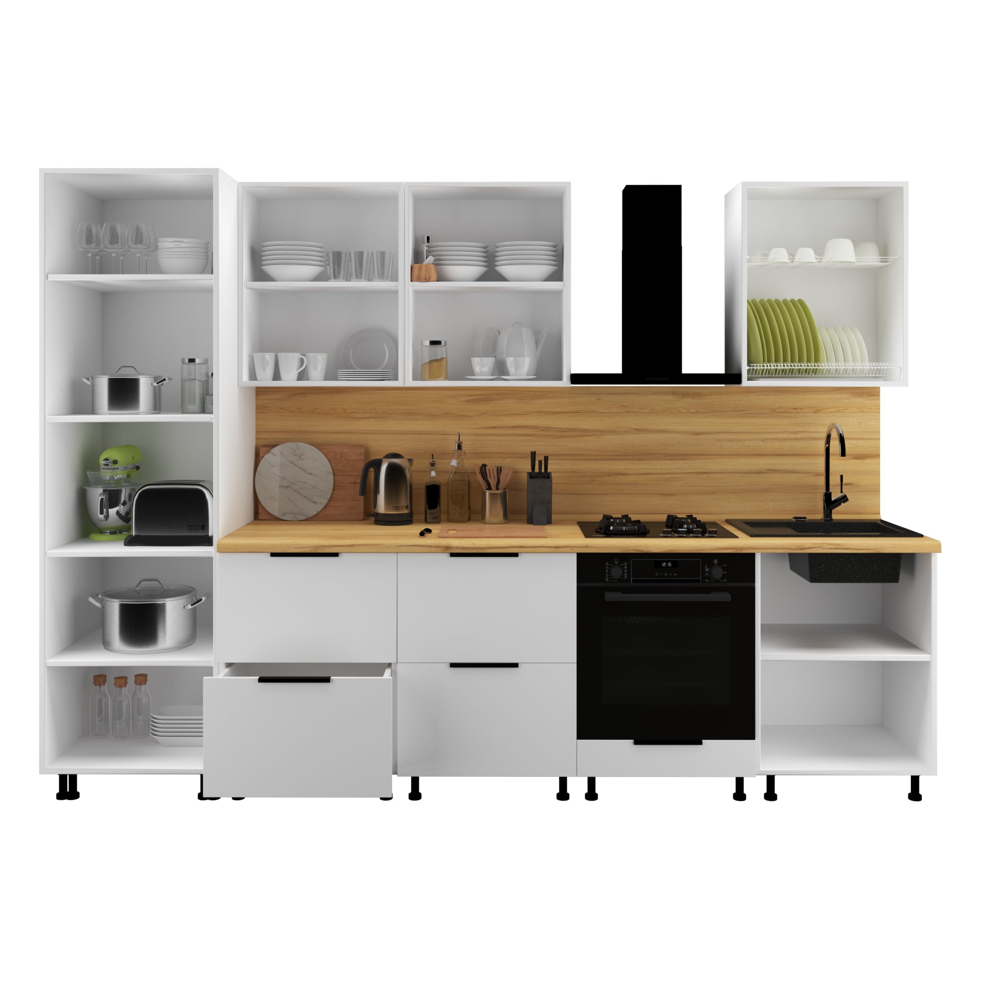 Кухня Сити 3000 Белый матовый, материал корпуса - ЛДСП, габариты 3000x600x2100 мм.