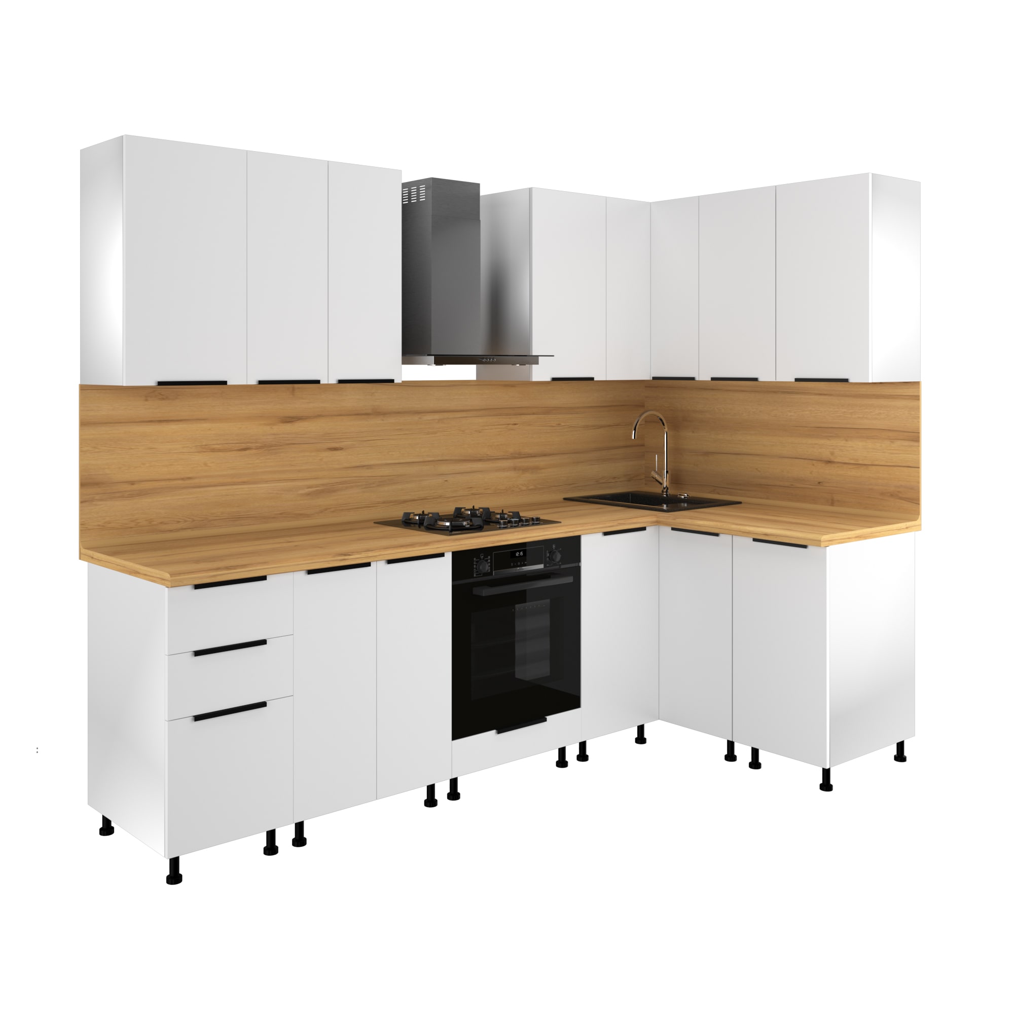 Кухня Сити угловая 2600х1400 Белый матовый, материал корпуса - ЛДСП, габариты 2600x1400x2100 мм.