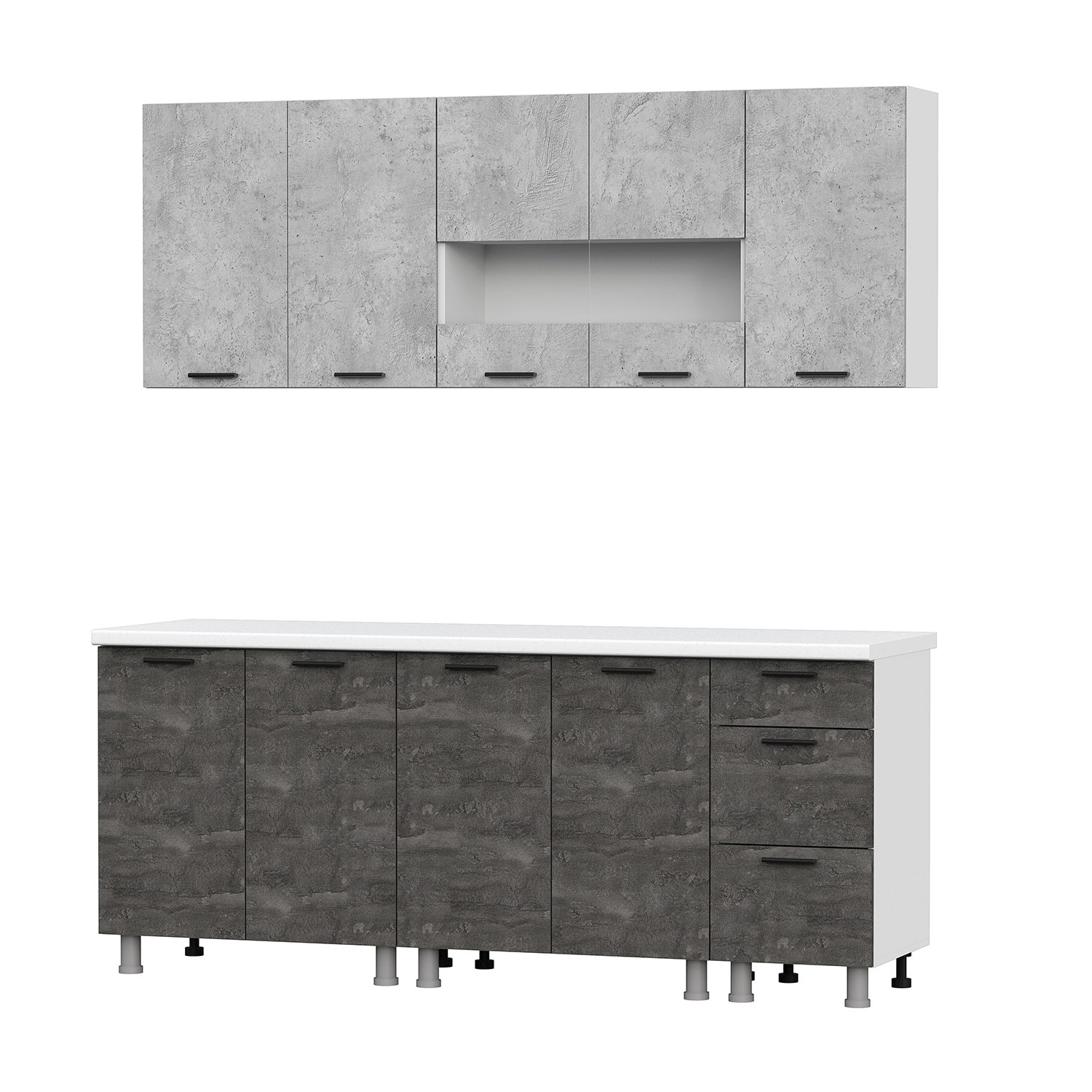 Кухня SV Модус 2000 Цемент светлый/Камень, материал корпуса - ЛДСП, габариты 2000x506x2170 мм.