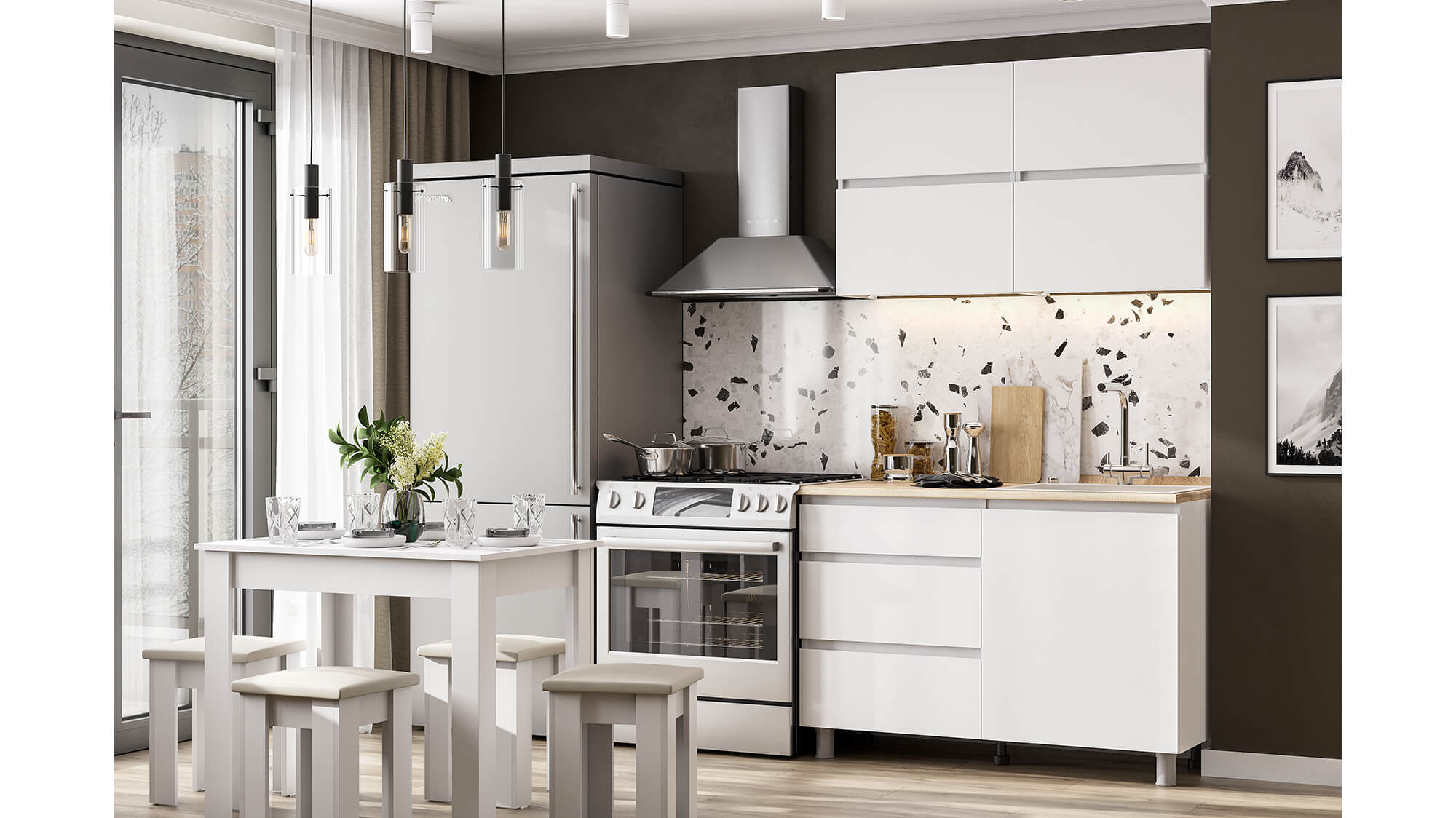 Белая кухня "Токио" делает помещение эффектным, стильным и визуально расширяет его границы.
