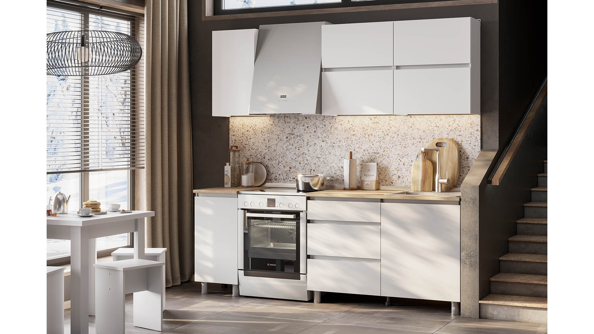Кухня Токио 1600 Белый текстурный доступна к заказу в различных цветовых исполнениях, подходящих к любому интерьеру обеденной зоны.