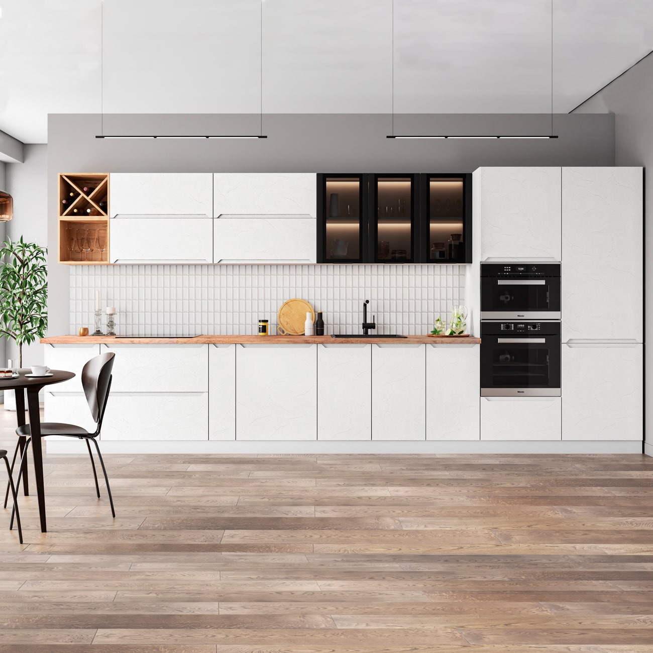 Кухонный гарнитур Тренто 4400 Штукатурка белая доступна к заказу в различных цветовых исполнениях, подходящих к любому интерьеру обеденной зоны.