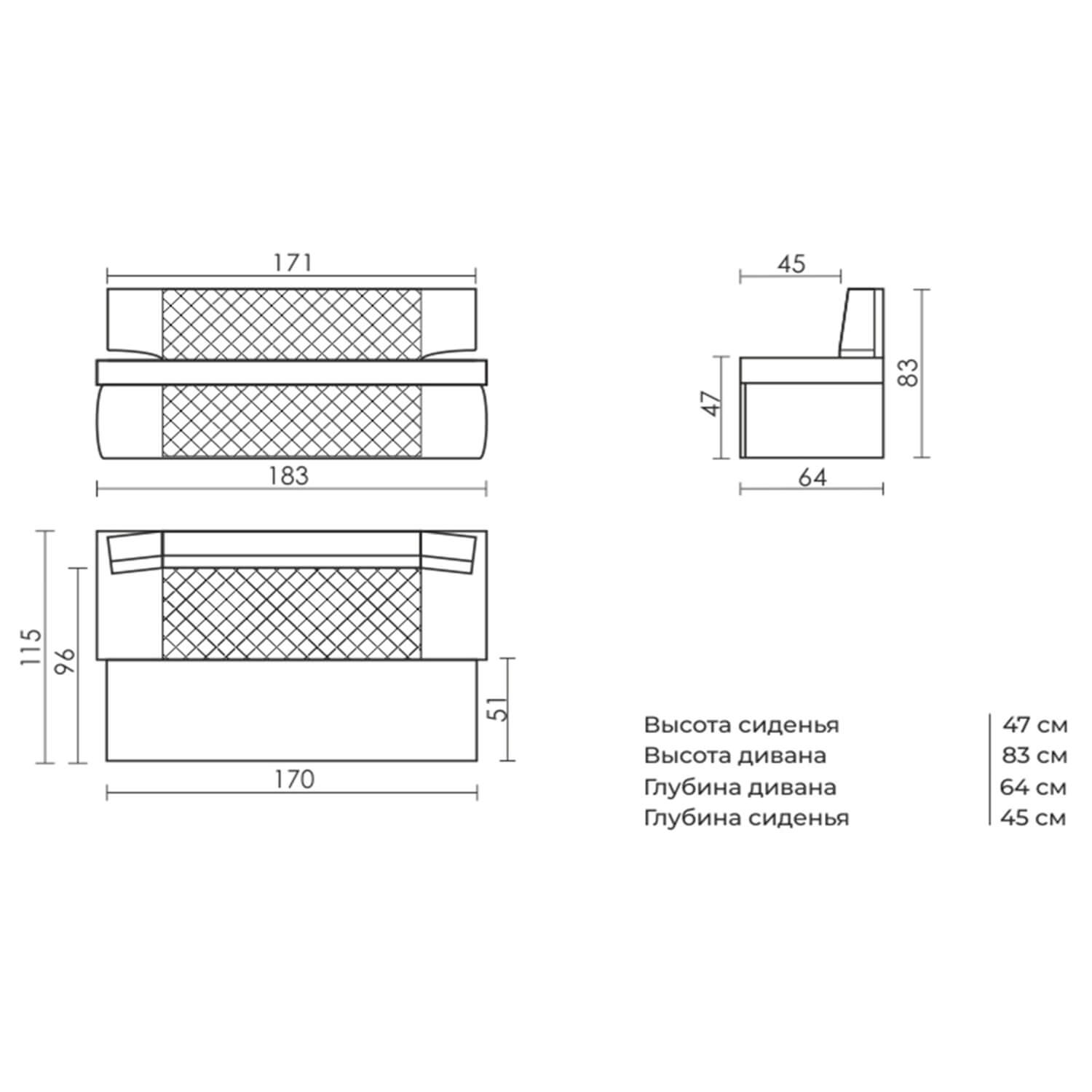 Глубина дивана: 640 мм