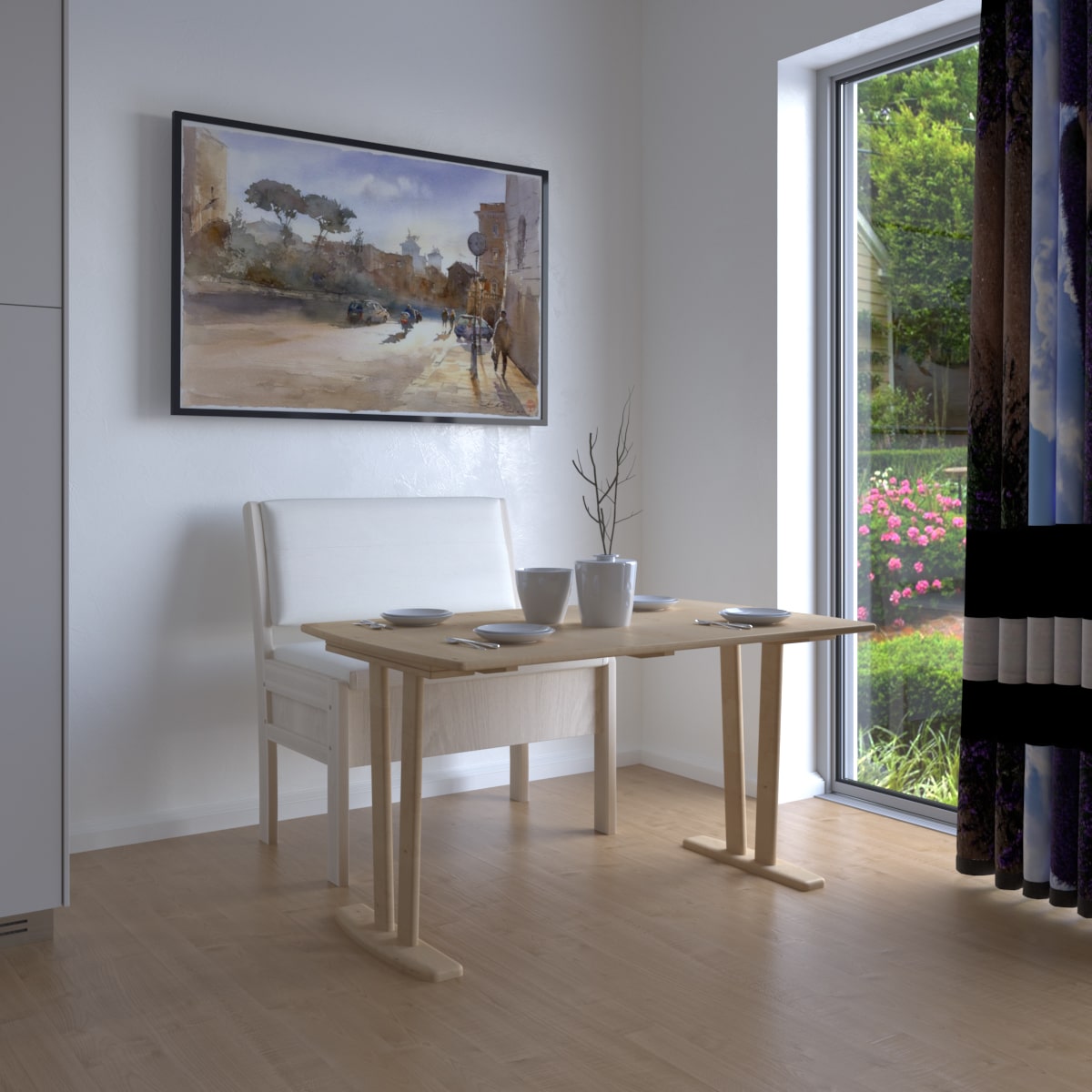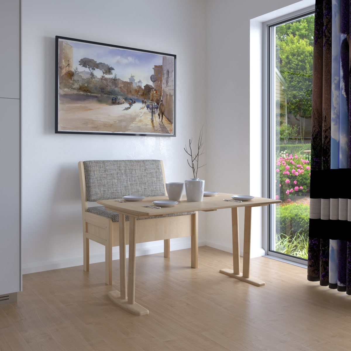 Габариты дивана составляют 95 x 58 x 88 см, что позволяет разместить его даже на небольшой кухне. Ширина сиденья составляет 91 см, глубина - 43 см, высота сиденья - 46 см.