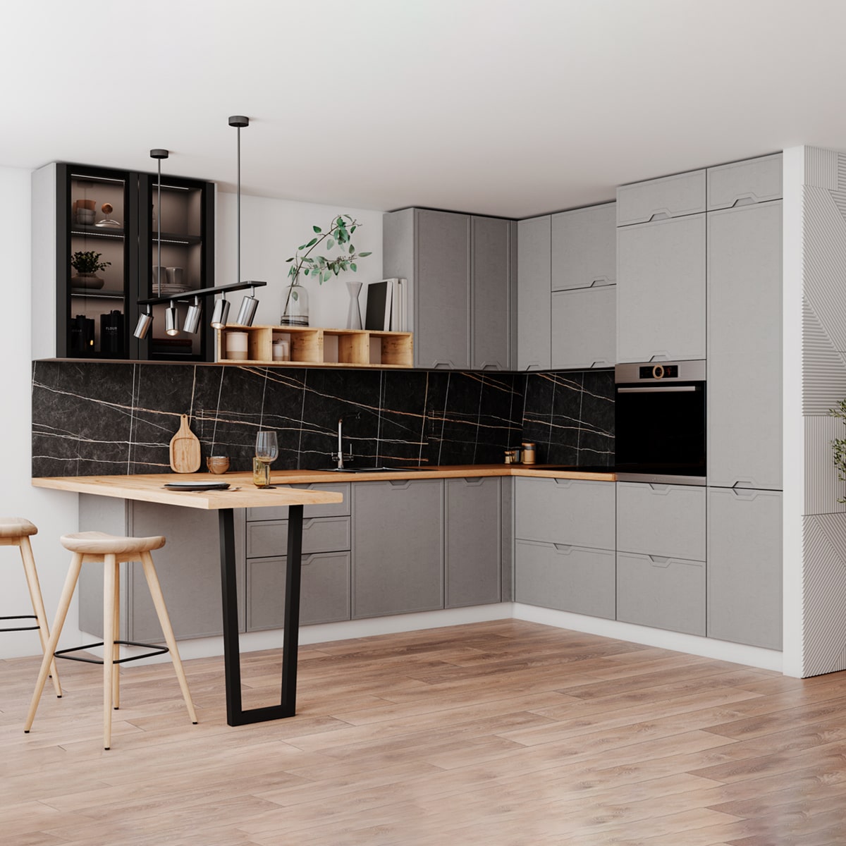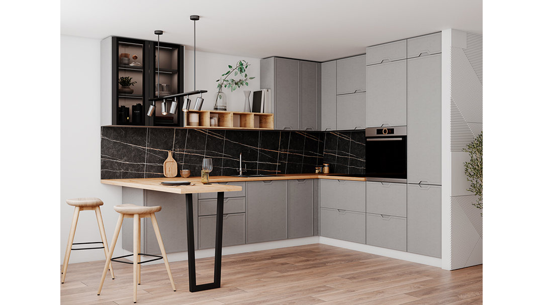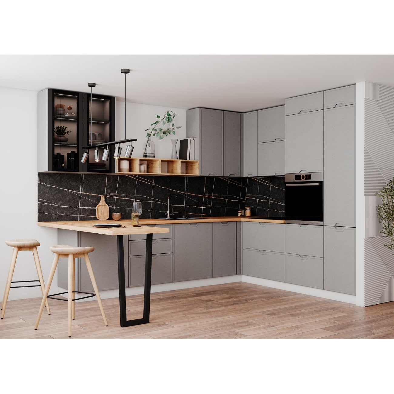 Кухонный гарнитур Арка 2800х2400 Штукатурка серая доступна к заказу в различных цветовых исполнениях, подходящих к любому интерьеру обеденной зоны.