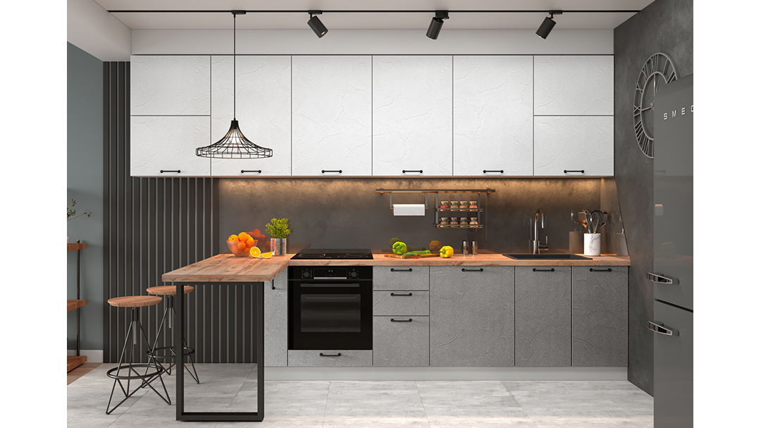 Кухонный гарнитур Лофт 3600 Штукатурка белая/Штукатурка серая доступна к заказу в различных цветовых исполнениях, подходящих к любому интерьеру обеденной зоны.