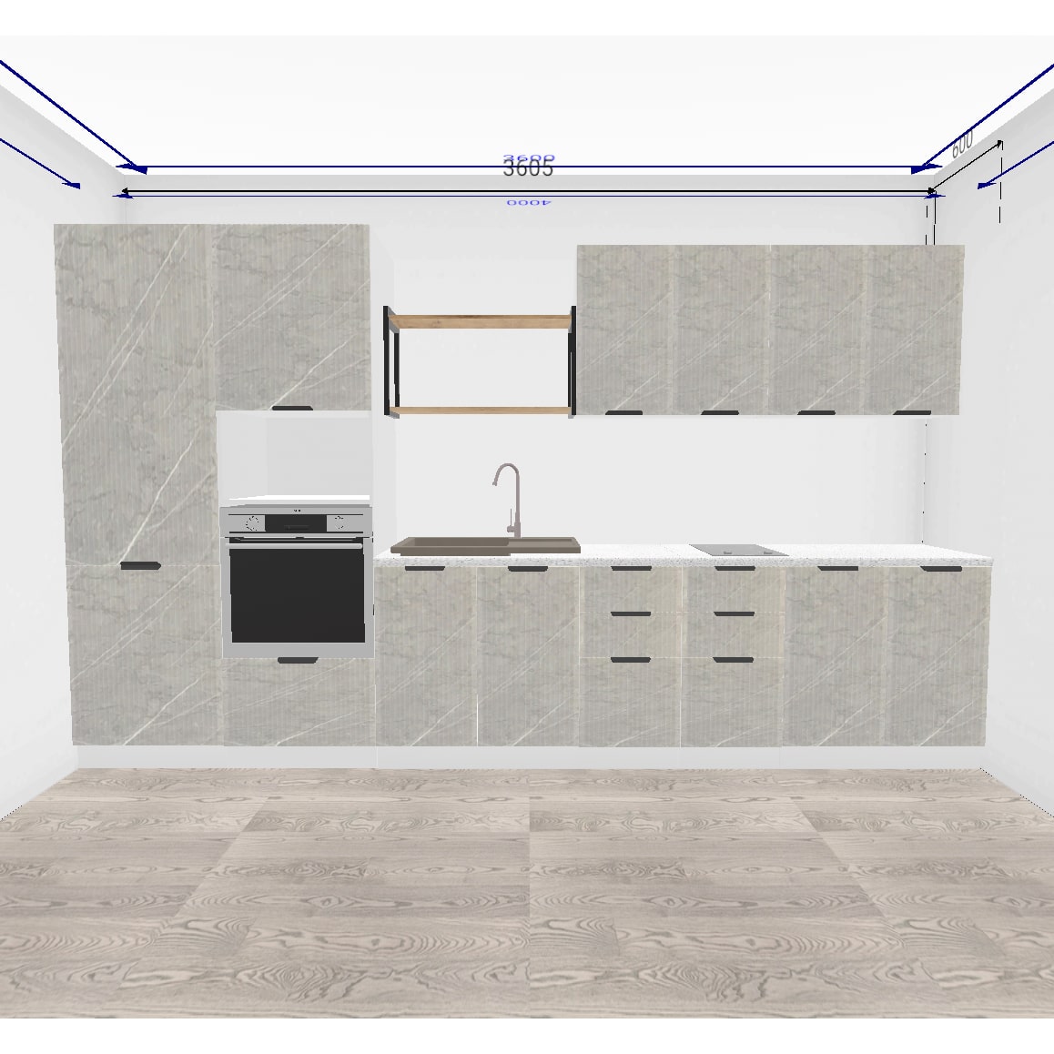 Кухонный гарнитур Монца 3600 Гранит маус, материал корпуса - ЛДСП, габариты 4200x600x2120 мм.