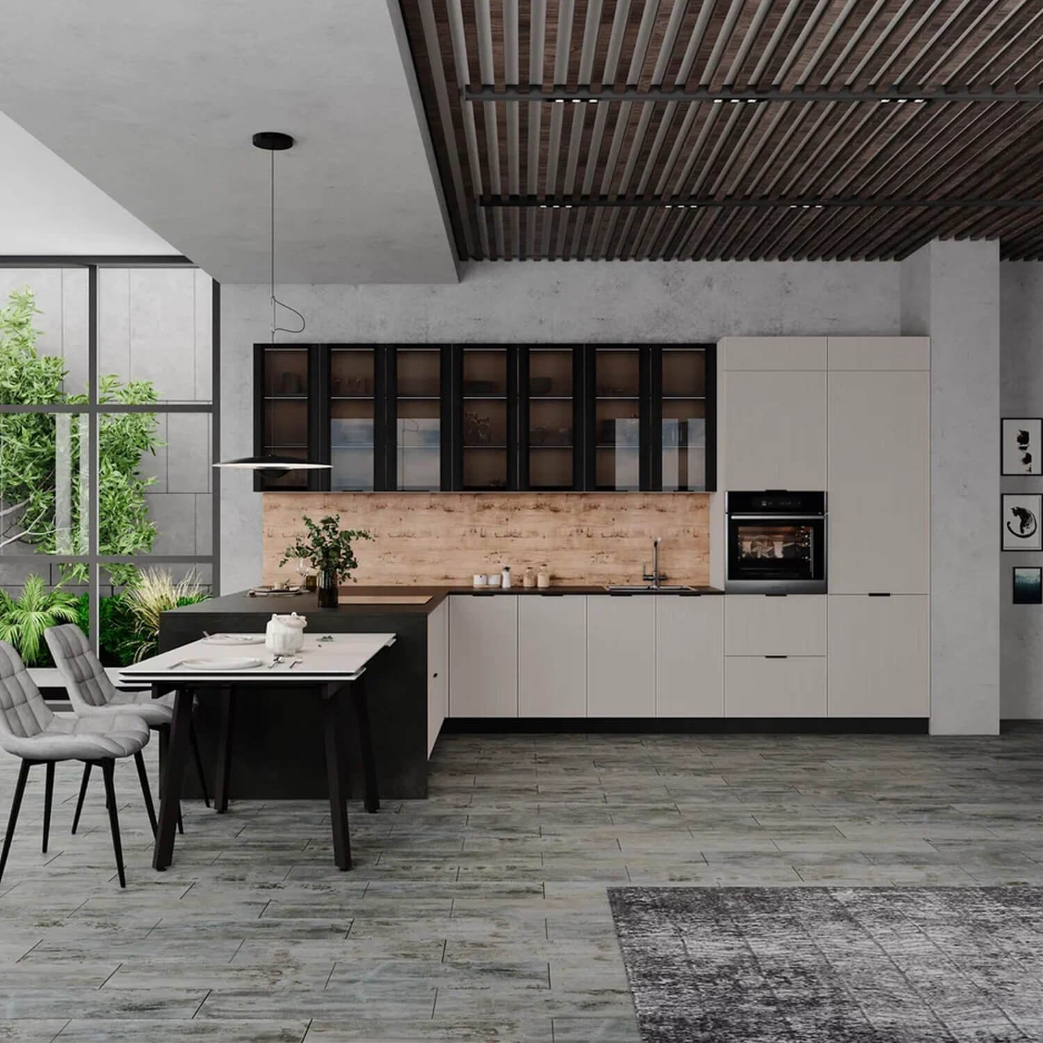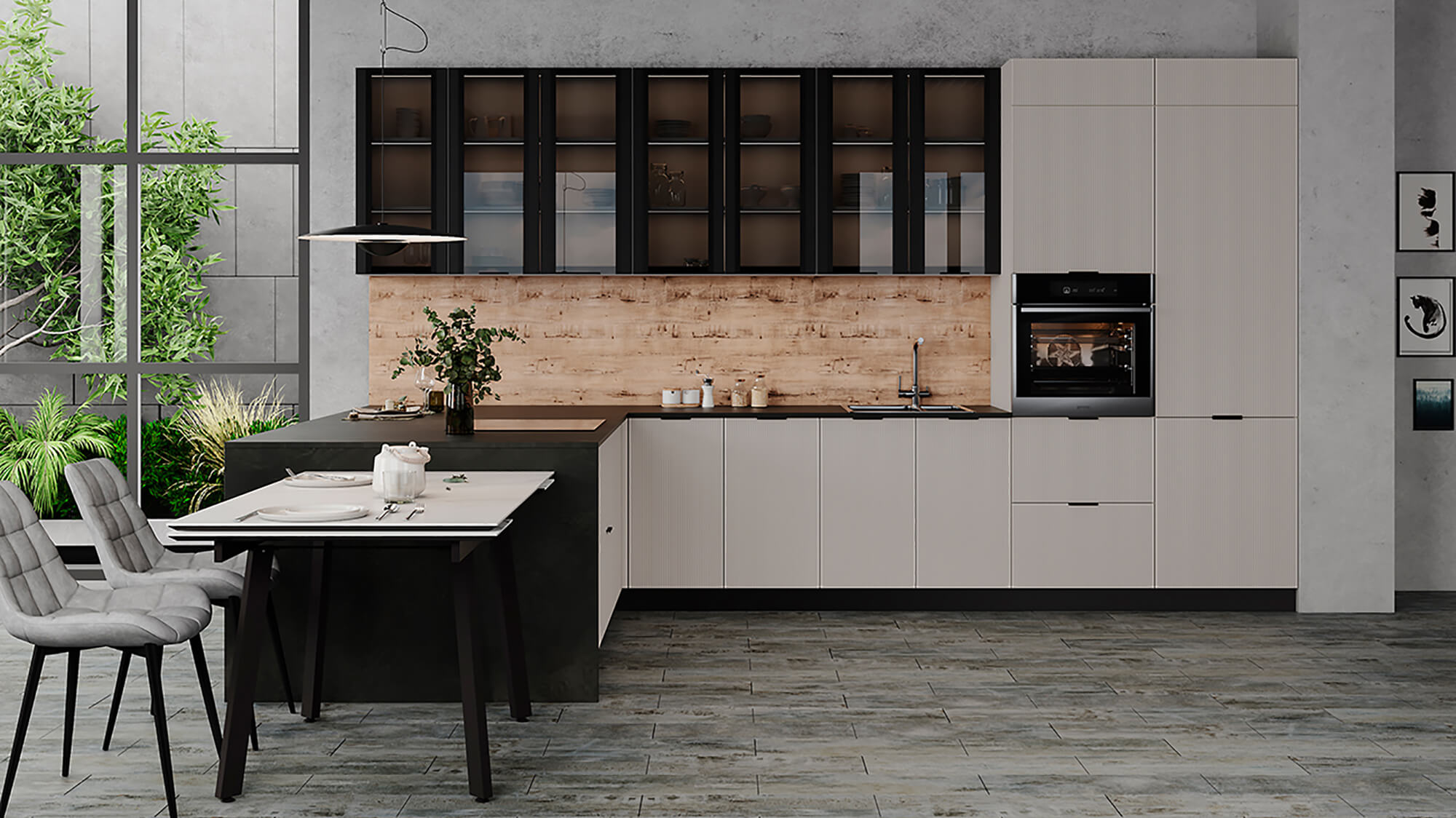Кухонный гарнитур Паола 4000х1600 Вижн доступна к заказу в различных цветовых исполнениях, подходящих к любому интерьеру обеденной зоны.