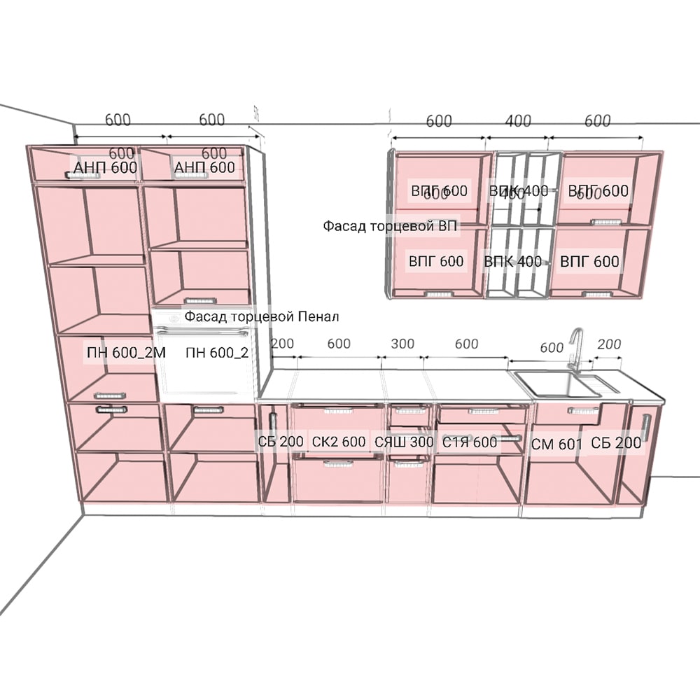Столешница и техника заказывается отдельно!