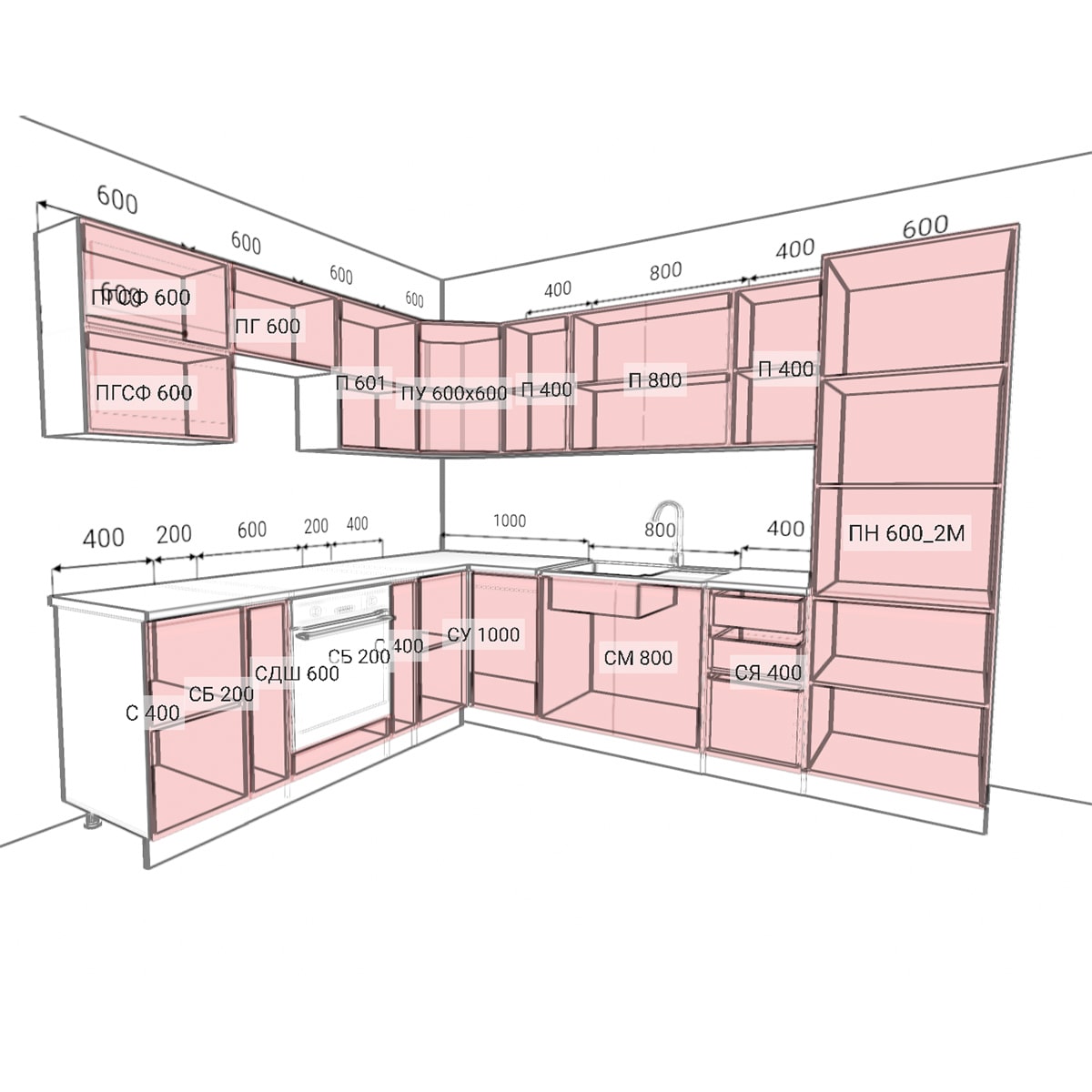 Столешница и техника заказывается отдельно!